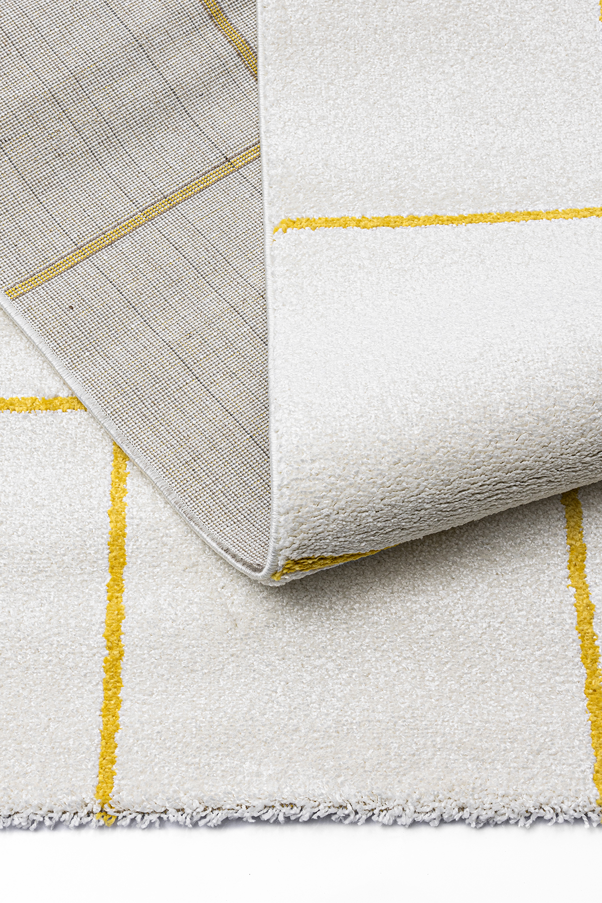 Fjord White Yellow Carpet 59836A We are here with the Fjord Collection, a versatile complement to your living spaces. Fjord carpet with 8-10 mm pile height and high quality polyester content has a cotton base coating that increases strength. Fjord Collection is carefully designed with vibrant color options and regular geometric patterns that complement all kinds of decor. Fjord, which is stylish with its patterns and colors and marginal with its original size design; is produced with its elegant details and high-level weaving technique. It has a rich product range with different size and color options. Ideal for those looking for decoration, comfort and elegance in living spaces. It is suitable for use in living rooms, living rooms and bedrooms indoors. The carpet suits every environment perfectly with the perfect harmony of anthracite-white, white-yellow and white-navy color options. This carpet brings dynamism and freshness to your room while also creating a striking accent on the floor. With its stylish design and high quality materials, it provides both a visually pleasing appearance and offers long-lasting use. It is an ideal choice for those looking for comfort and style in interiors by bringing together minimalism and elegance. Beautify your space with its minimalist and modern look by creating an elegant and stylish environment. Enrich your decor, comfort and ambiance with Fjord, designed to add style to your living spaces. Note: Actual colors may vary depending on lighting and monitor settings