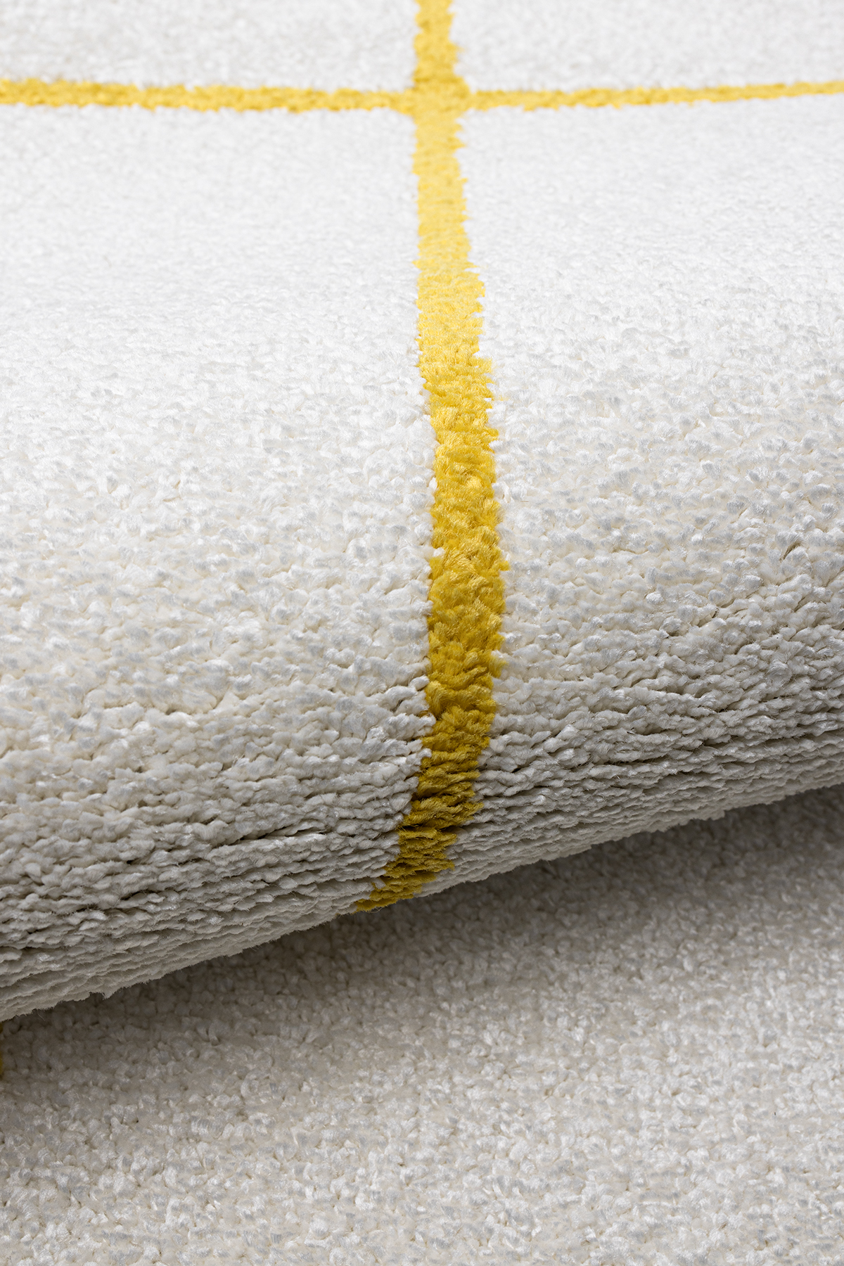 Fjord White Yellow Carpet 59836A We are here with the Fjord Collection, a versatile complement to your living spaces. Fjord carpet with 8-10 mm pile height and high quality polyester content has a cotton base coating that increases strength. Fjord Collection is carefully designed with vibrant color options and regular geometric patterns that complement all kinds of decor. Fjord, which is stylish with its patterns and colors and marginal with its original size design; is produced with its elegant details and high-level weaving technique. It has a rich product range with different size and color options. Ideal for those looking for decoration, comfort and elegance in living spaces. It is suitable for use in living rooms, living rooms and bedrooms indoors. The carpet suits every environment perfectly with the perfect harmony of anthracite-white, white-yellow and white-navy color options. This carpet brings dynamism and freshness to your room while also creating a striking accent on the floor. With its stylish design and high quality materials, it provides both a visually pleasing appearance and offers long-lasting use. It is an ideal choice for those looking for comfort and style in interiors by bringing together minimalism and elegance. Beautify your space with its minimalist and modern look by creating an elegant and stylish environment. Enrich your decor, comfort and ambiance with Fjord, designed to add style to your living spaces. Note: Actual colors may vary depending on lighting and monitor settings