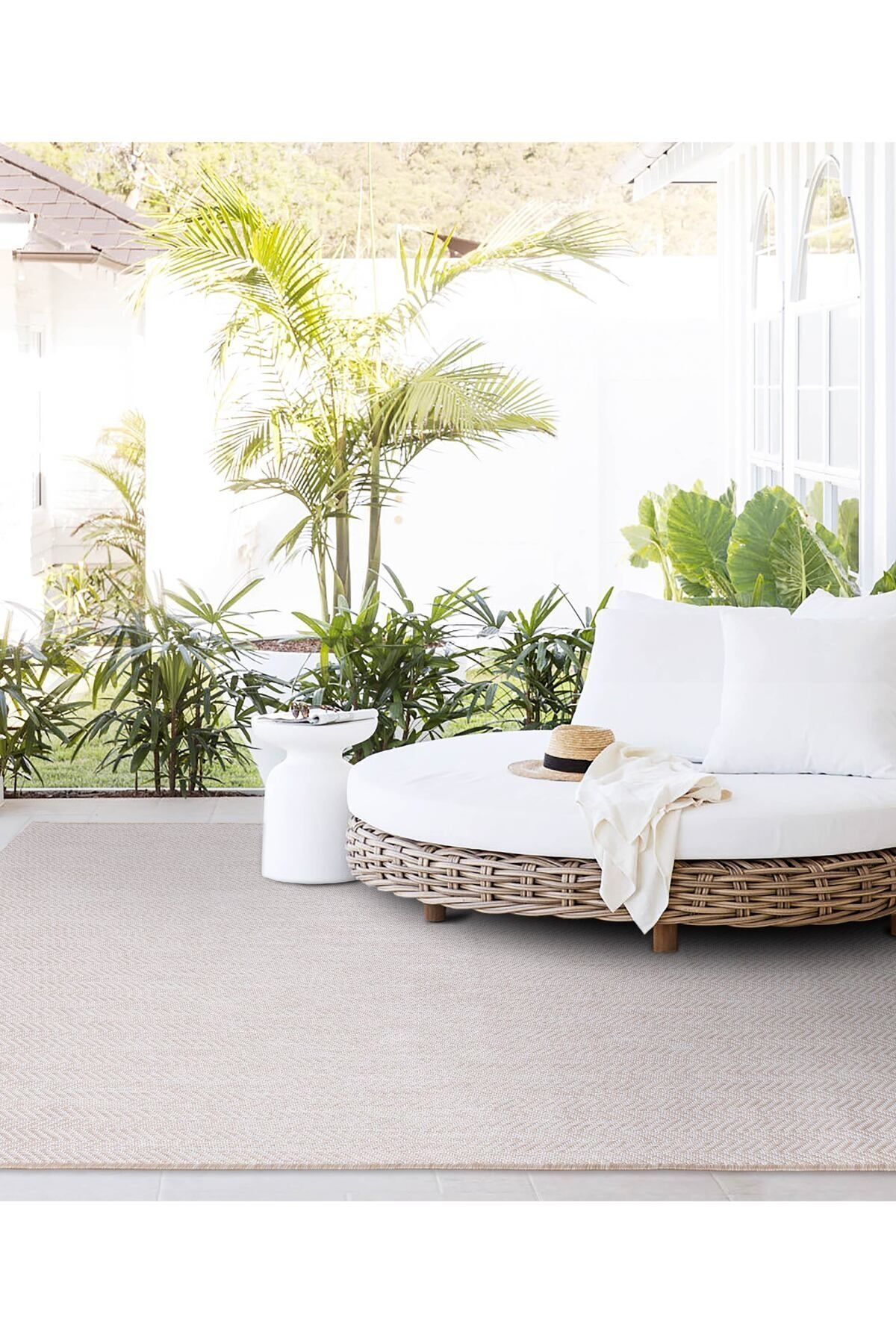 Koza Halı Fresco Ecru Natural Scandinavian Jute Washable Carpet Rug Balcony Kitchen Living Room Corridor Carpet 20522A 120 x 180