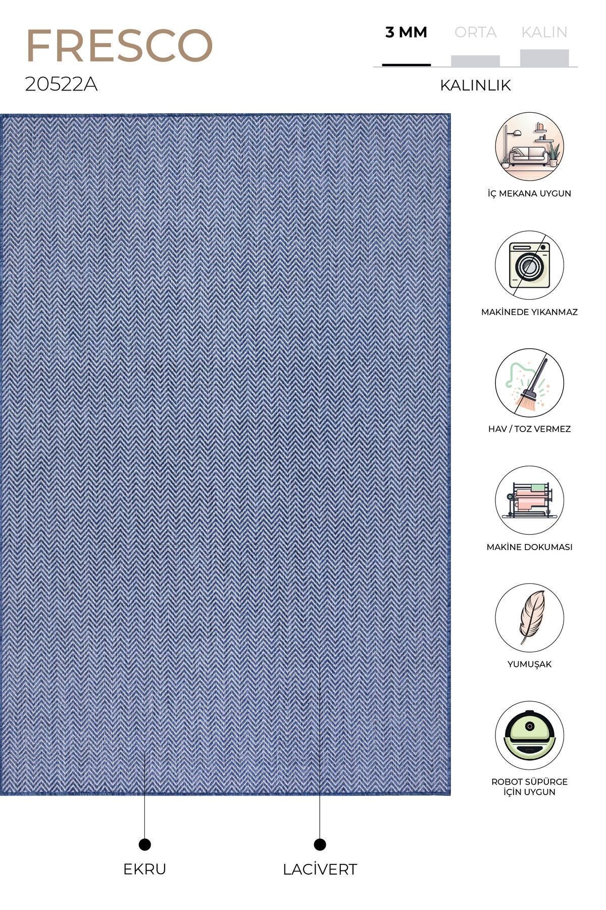 - Koza Halı Fresco Ecru Navy Blue Scandinavian Jute Washable Carpet Rug Balcony Terrace Living Room Corridor Carpet 20522A 60 x 100