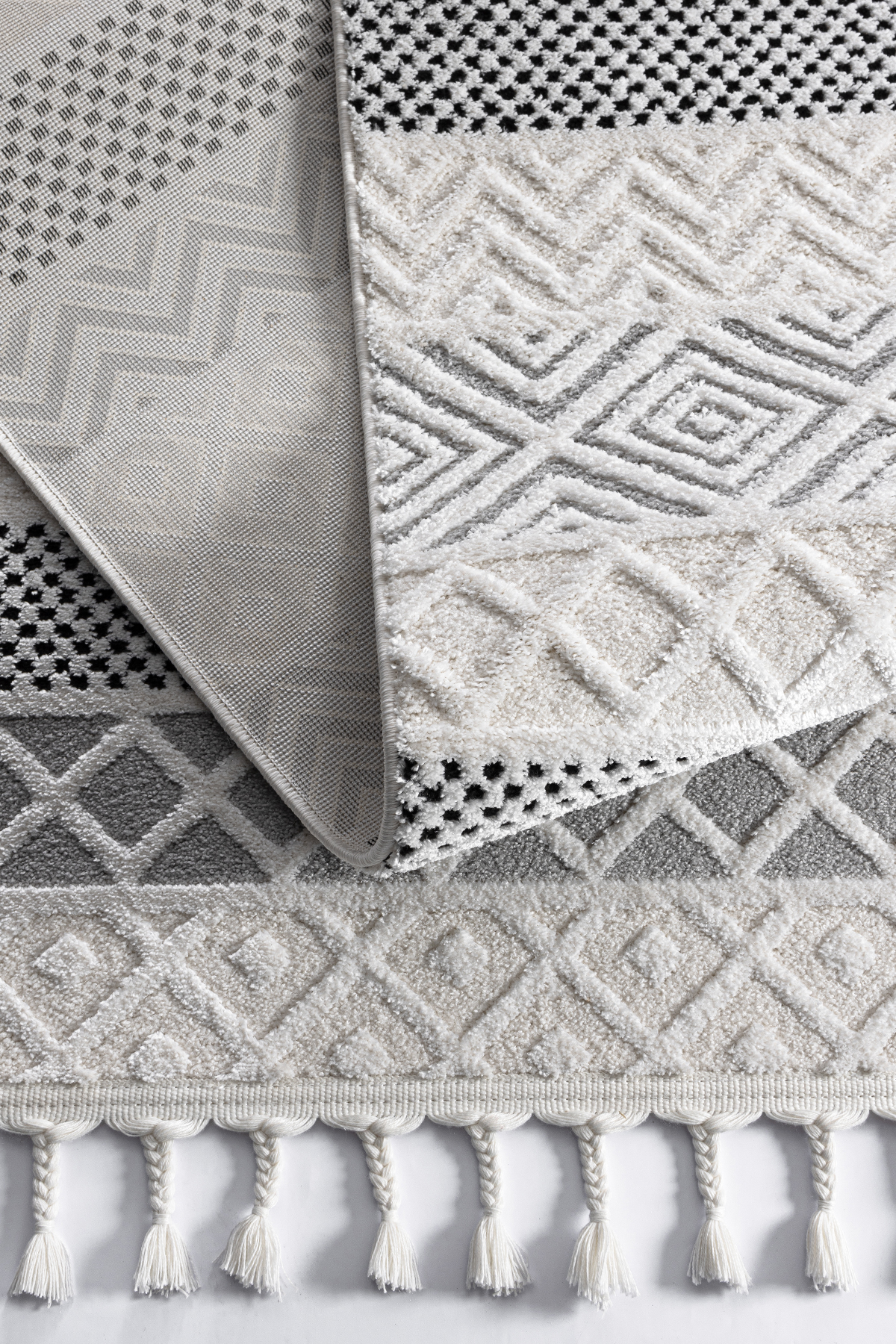 Koza Halı Koza Hayad Monaco Cream Black Carpet Living Room Bedroom Hallway Machine Carpet 33342 100 x 150