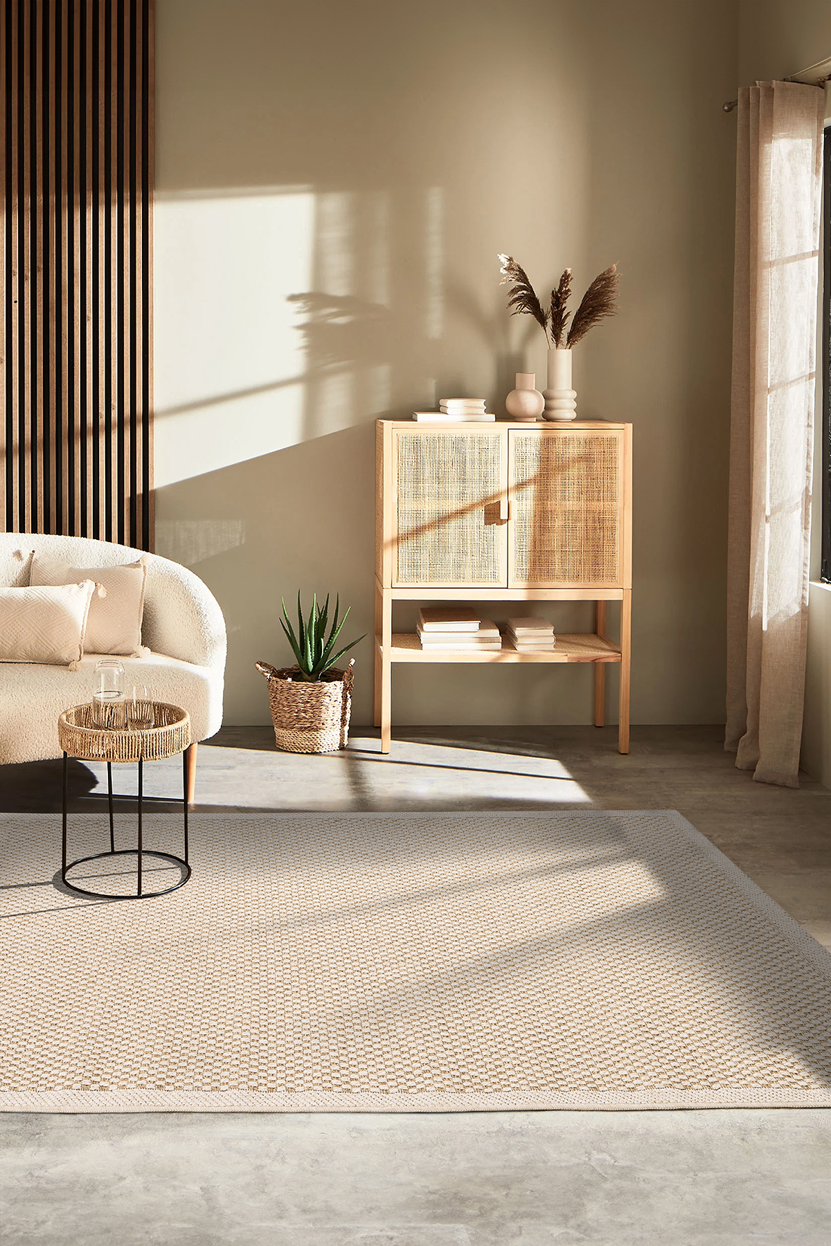 Koza Origine Made of olefin with a natural look and unique structure, high moisture retention capacity and resistant to weather conditions in all seasons. Reflecting its minimal style with its modern plain weave in your outdoor spaces, Koza Origine Collection will create an elegant and stylish ambiance with its functional structure compatible with all decorations. How is it made? Contains olefin. Machine produced. Package Content: 1 Koza Origine Carpet Usage Recommendations: Suitable for outdoor use. Maintenance: Antistatic, resistant to UV rays, highly resistant to moisture and mold, easy to clean and maintain.
