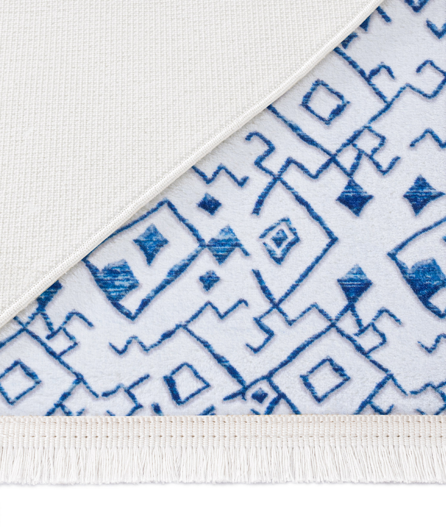 Koza Halı Maze Flux Blue Patterned Plush Carpet 7451 100 x 150