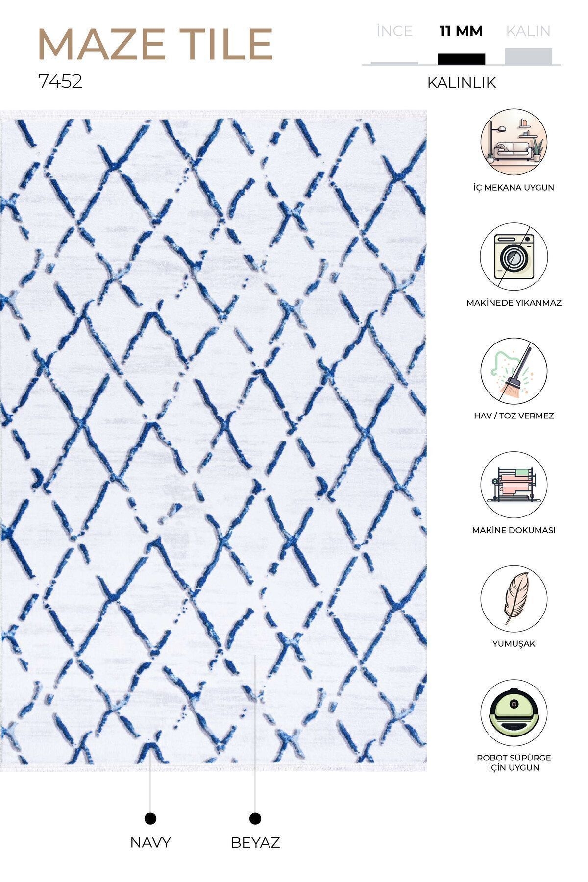 Koza Halı Maze Tile Navy Patterned Plush Carpet 7452 50 x 80