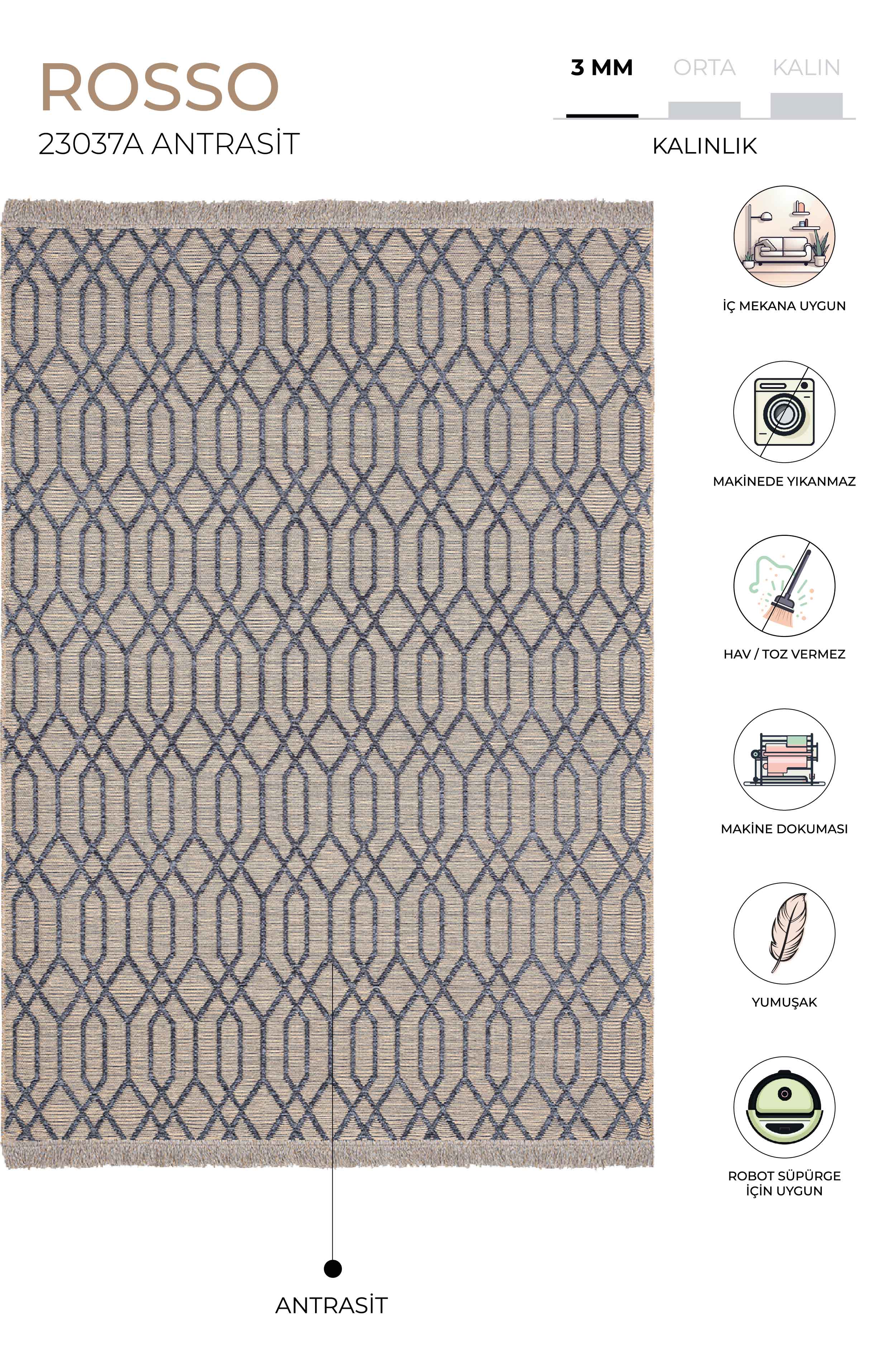 Koza Halı Rosso Anthracite Woven Sisal Carpet Jute Carpet Rug Living Room Bedroom Hallway Carpet 23037A 200 x 290