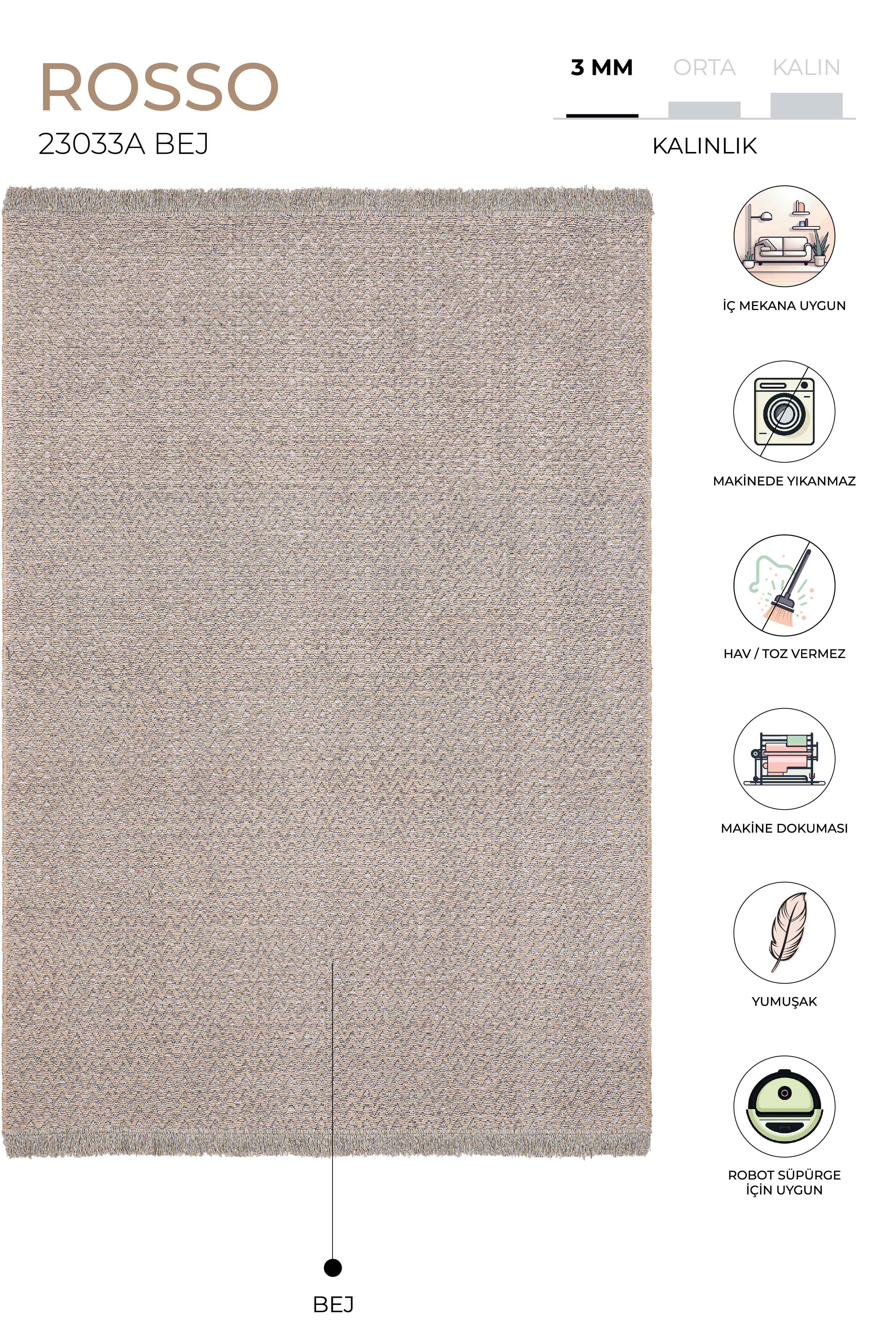 ROSSO PRODUCT FEATURES Our Rosso collection is a jute rug and is produced with Koza Halı technology using jute and polyester chenille with a density of 130,000 knots. HOW IS IT MADE? It is produced on high-speed computer-controlled machine looms using jute and polyester chenille on modern Koza Halı looms; It is highly stain resistant, long-lasting, durable and resistant to color fading. TECHNICAL INFORMATION -130,000 knots -1900 gr/m2 USAGE AREAS -Can be used in living room, kitchen and balcony areas. MAINTENANCE AND CLEANING Clean your rug daily with a brushed vacuum cleaner. Do not wipe with chemicals such as bleach, alcohol, etc. Do not wash it yourself, wipe it with a wet cloth and ventilate it. Sweep your rug in the direction of pile. Do not leave sharp, hard, heavy objects and items placed on the rug in the same place for a long time. When not in use, store your carpet in a rolled up position, away from humidity and vertically. Do not expose it to direct sunlight. The above reasons and stains during use exclude your carpet from the warranty.