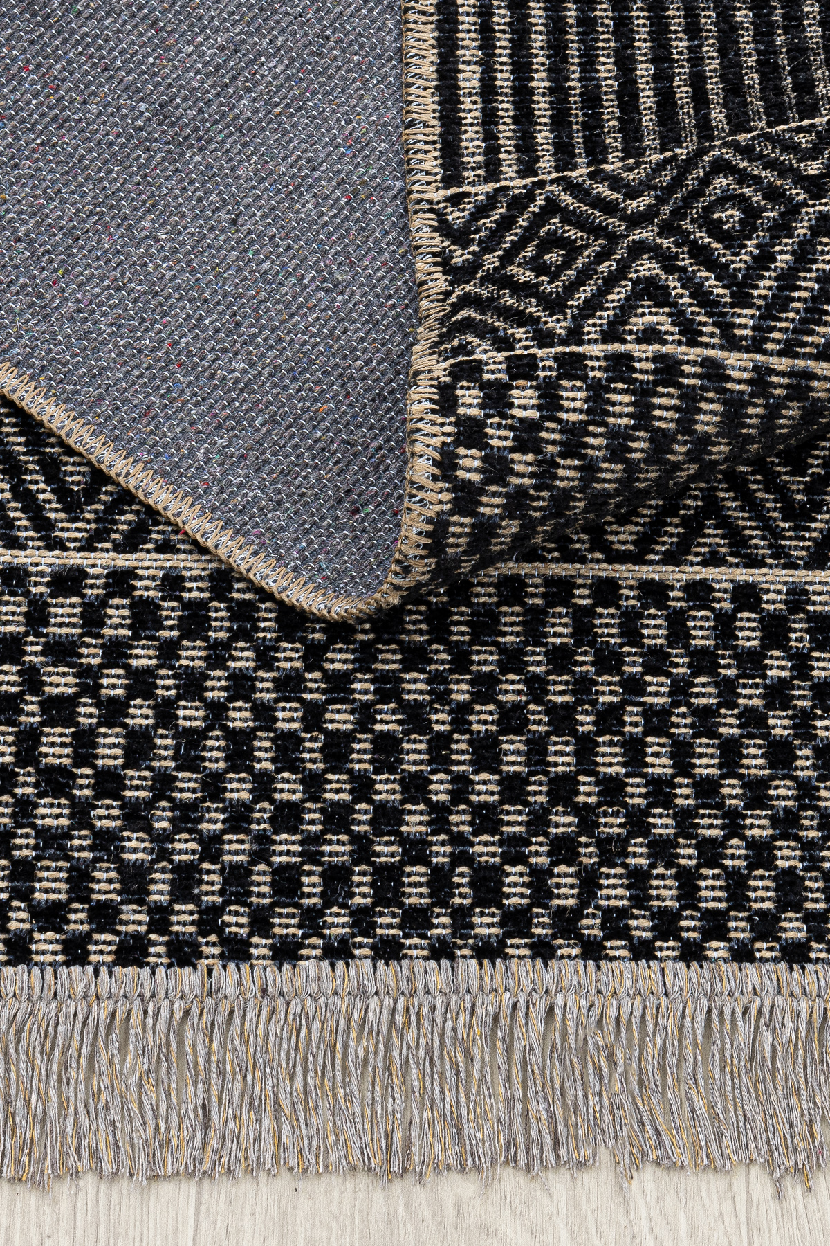 Koza Halı Rosso Black Woven Sisal Rug Jute Carpet Kilim Living Room Sitting Room Bedroom Hallway Rug 23041A 120 x 180
