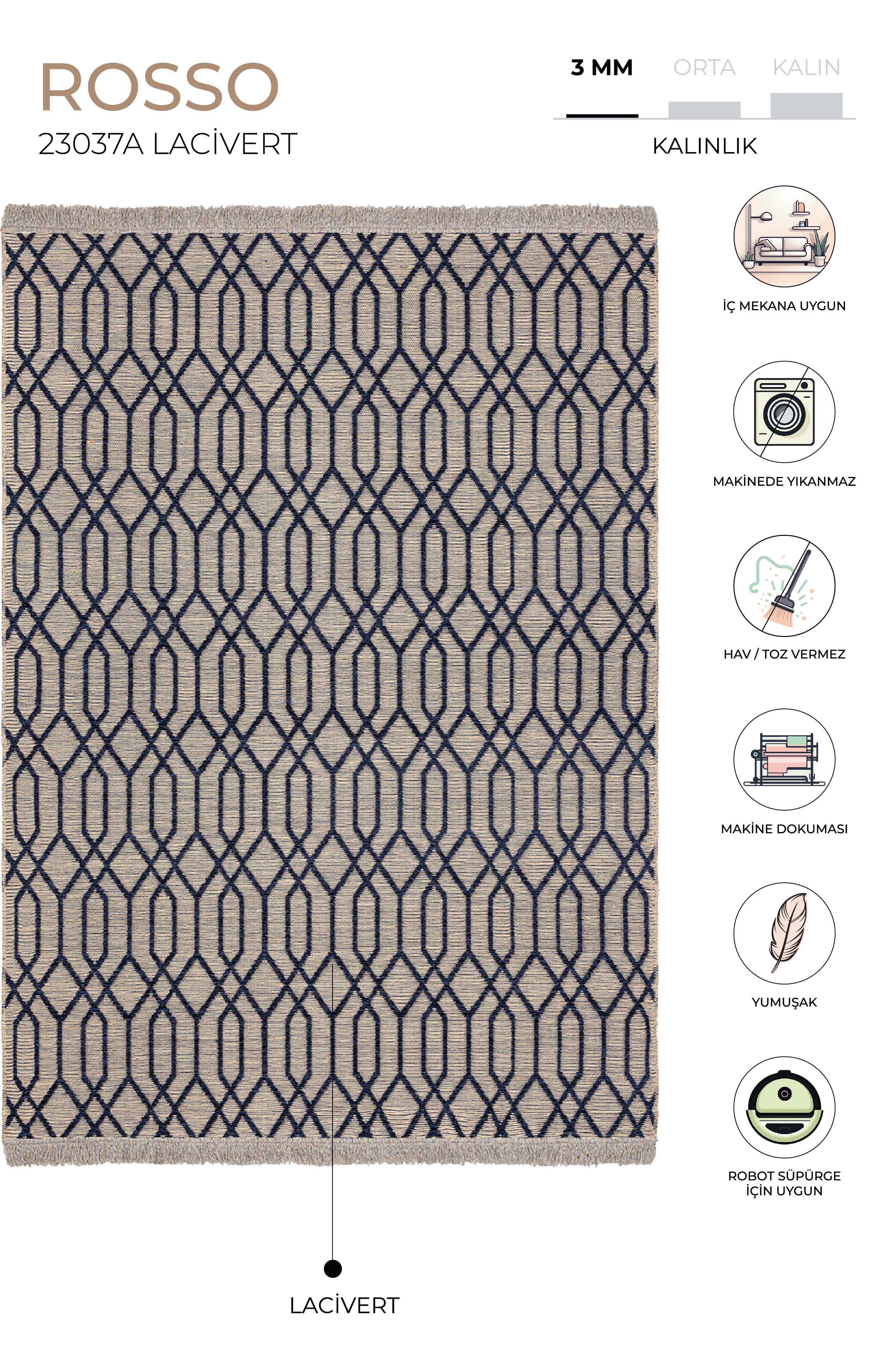 Koza Halı Rosso Navy Blue Woven Sisal Rug Jute Rug Kilim Living Room Sitting Room Bedroom Hallway Rug 23037A 160 x 230