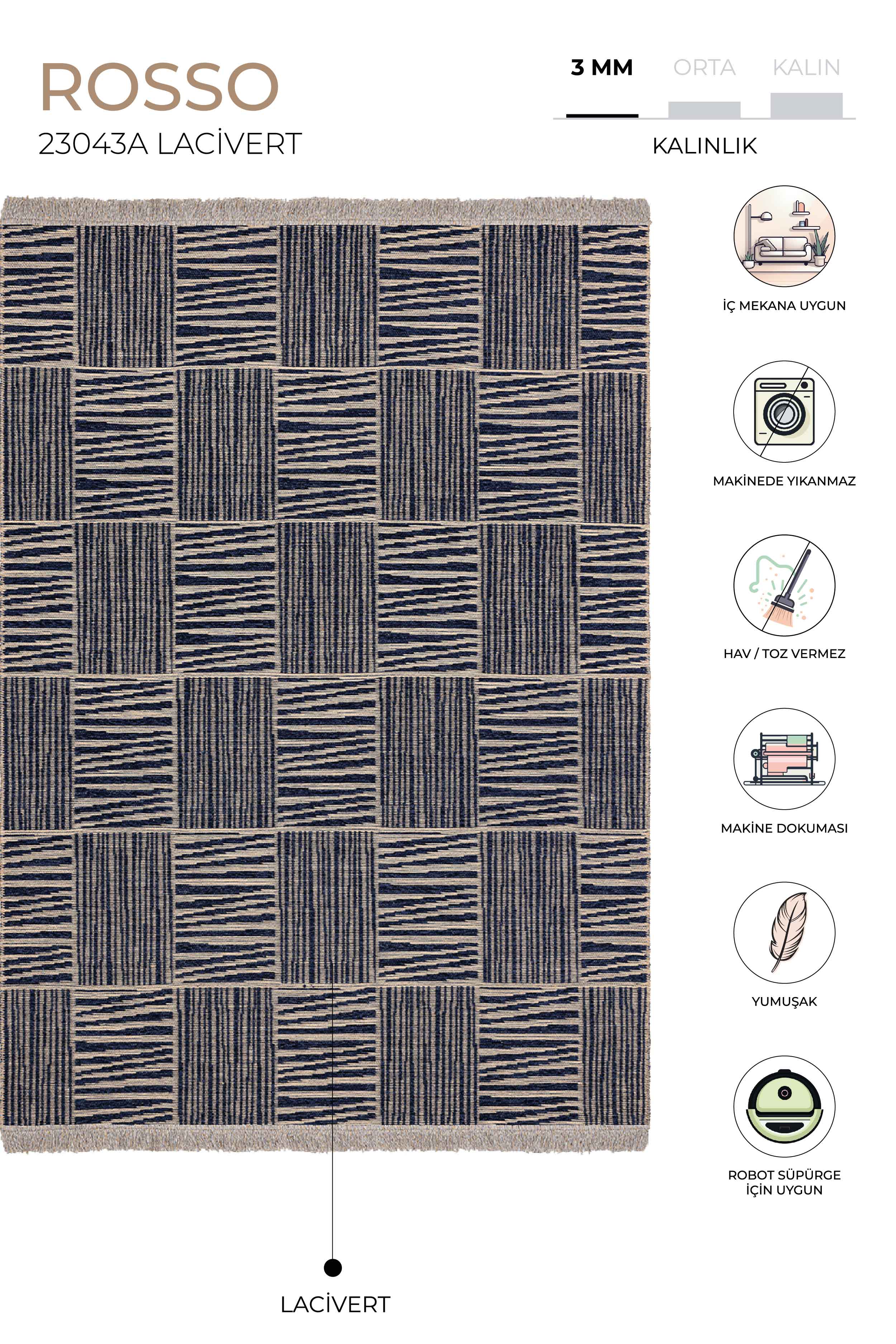 Koza Halı Rosso Navy Blue Woven Sisal Rug Jute Rug Kilim Living Room Sitting Room Bedroom Hallway Rug 23043A 120 x 180