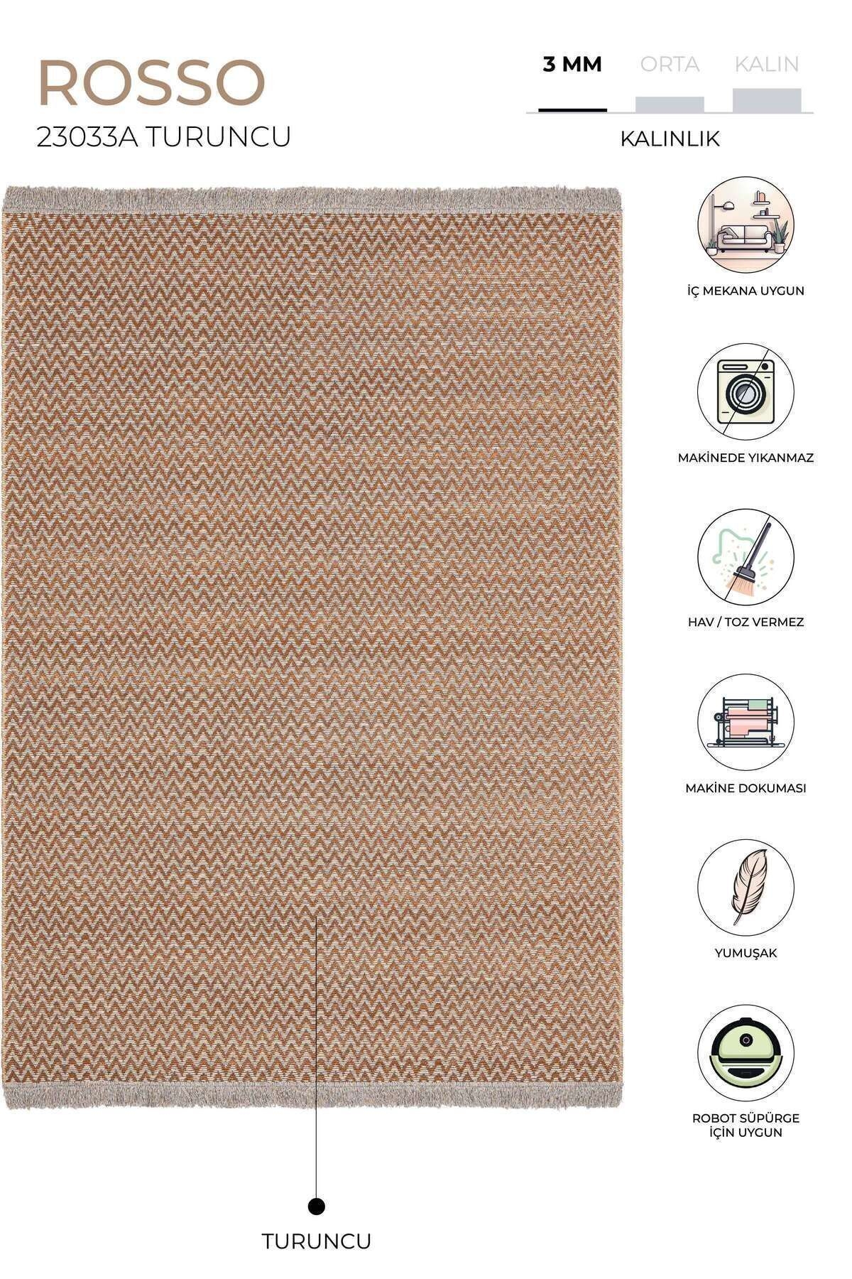Koza Halı Rosso Orange Woven Sisal Rug Jute Rug Kilim Living Room Sitting Room Bedroom Hallway Rug 23033A 80 x 150