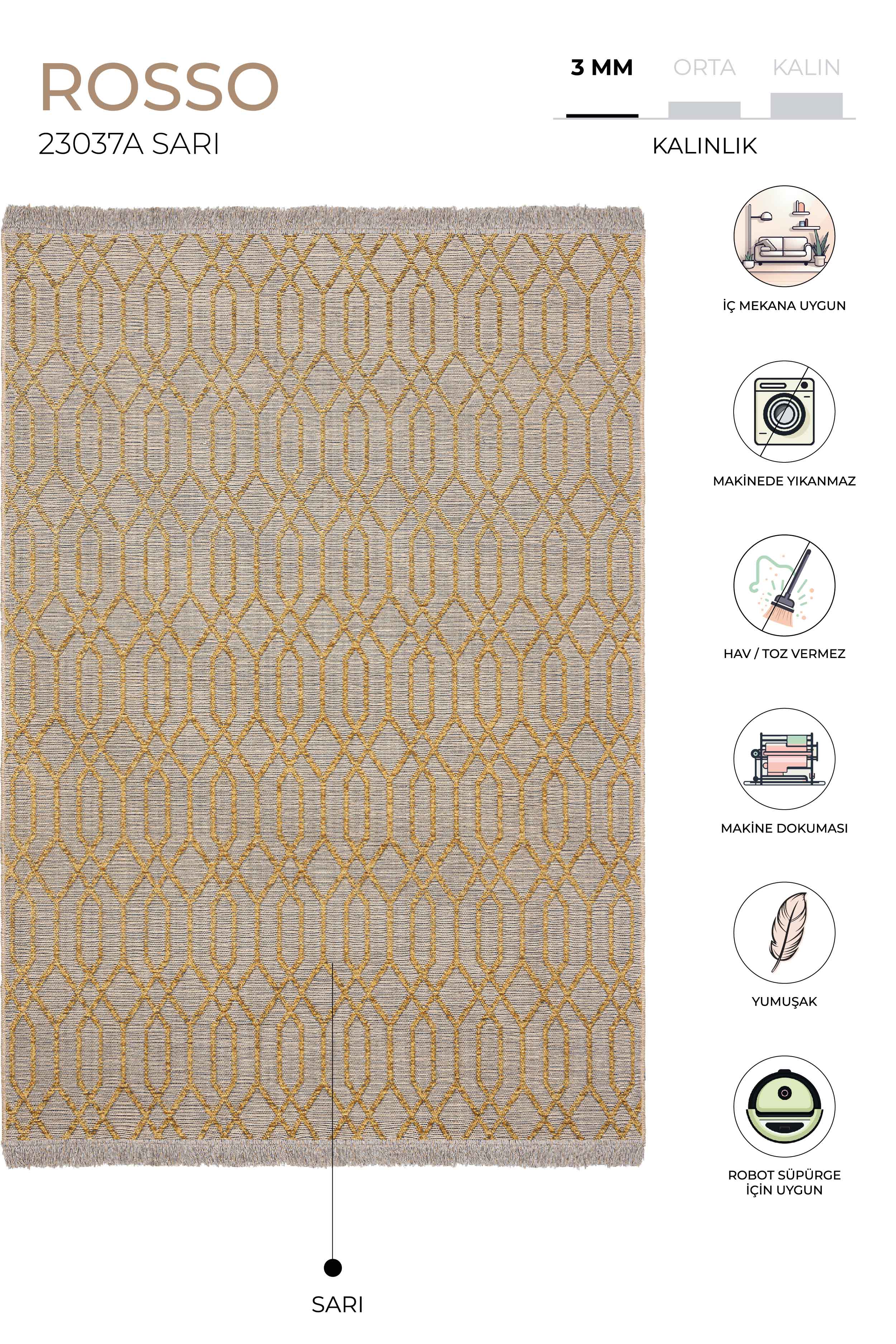 Koza Halı Rosso Yellow Woven Sisal Rug Jute Rug Kilim Living Room Sitting Room Bedroom Hallway Rug 23037A 160 x 230
