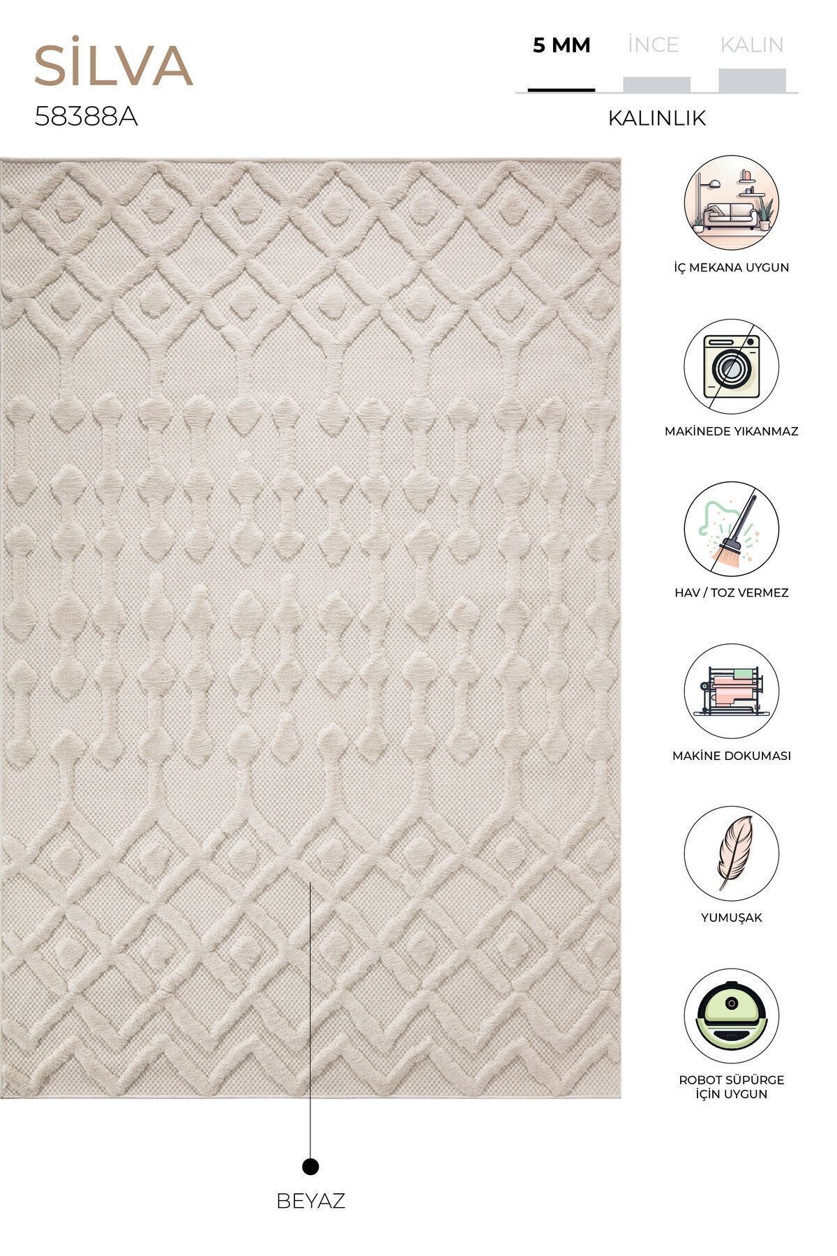 - Koza Halı Silva White Carpet Washable Carpet Balcony Carpet Living Room Hallway Bedroom Carpet 58388A 160 x 230