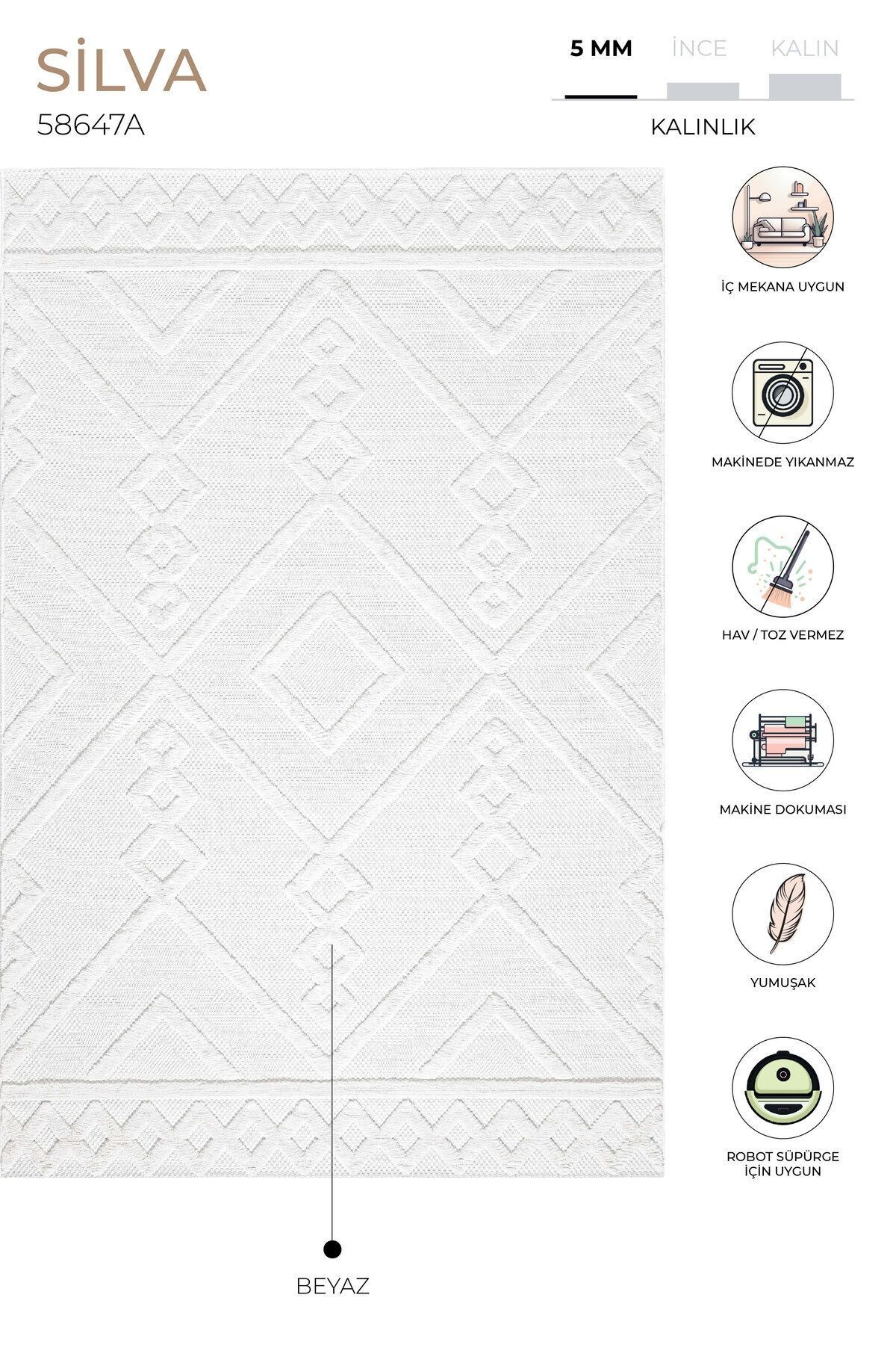 - Koza Halı Silva White Carpet Washable Carpet Balcony Carpet Living Room Hallway Bedroom Carpet 58647A 200 x 290