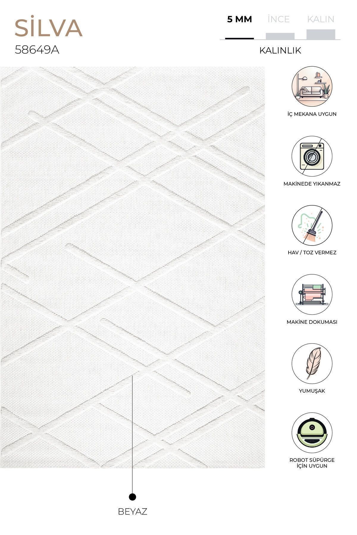- Koza Halı Silva White Carpet Washable Carpet Balcony Carpet Living Room Hallway Bedroom Carpet 58649A 160 x 230