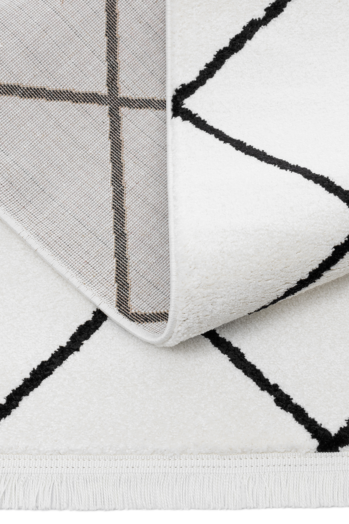Sjo White Carpet 59830 We are here with the Sjo Collection, a versatile complement to your living spaces. Sjo carpet with 8-10 mm pile height and high quality polyester content has a cotton base coating that increases strength. Sjo Collection is carefully designed with vibrant color options and geometric patterns that complement all kinds of decor. Sjo, which is stylish with its patterns and colors and marginal with its original size design; is produced with its elegant details and high-level weaving technique. It has a rich product range with different size and color options. Ideal for those looking for decoration, comfort and elegance in living spaces. It is suitable for use in living rooms, living rooms and bedrooms in interior spaces. The carpet suits every environment perfectly with its striking and perfect harmony of black, white and gray colors. This carpet brings dynamism and freshness to your room while also creating a striking accent on the floor. With its stylish design and high quality materials, it provides both a visually pleasing appearance and offers long-lasting use. Beautify your space with its minimalist and modern look by creating an elegant and stylish environment. Enrich your decor, comfort and ambiance with Sjo, designed to add style to your living spaces. Note: Actual colors may vary depending on lighting and monitor settings
