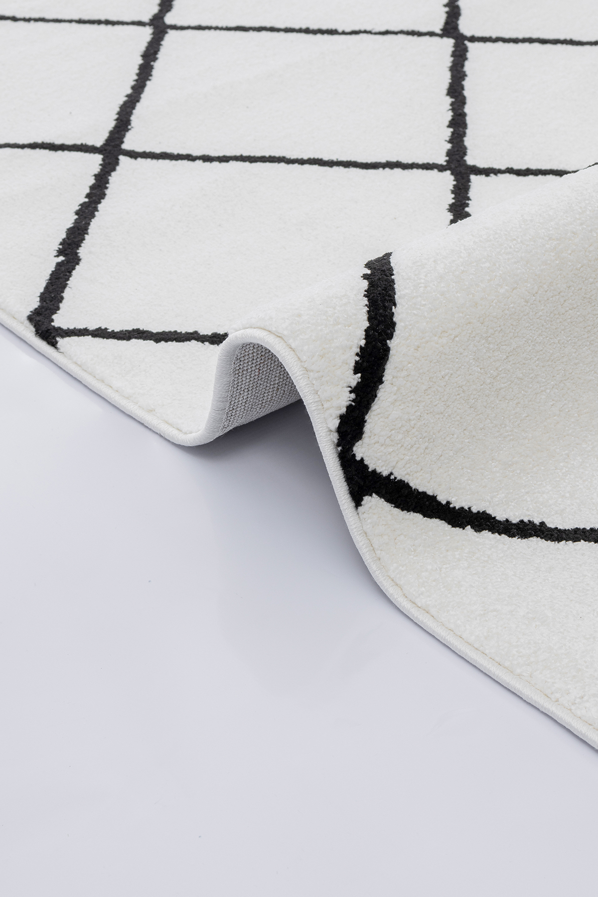 Sjo White Carpet 59830 We are here with the Sjo Collection, a versatile complement to your living spaces. Sjo carpet with 8-10 mm pile height and high quality polyester content has a cotton base coating that increases strength. Sjo Collection is carefully designed with vibrant color options and geometric patterns that complement all kinds of decor. Sjo, which is stylish with its patterns and colors and marginal with its original size design; is produced with its elegant details and high-level weaving technique. It has a rich product range with different size and color options. Ideal for those looking for decoration, comfort and elegance in living spaces. It is suitable for use in living rooms, living rooms and bedrooms in interior spaces. The carpet suits every environment perfectly with its striking and perfect harmony of black, white and gray colors. This carpet brings dynamism and freshness to your room while also creating a striking accent on the floor. With its stylish design and high quality materials, it provides both a visually pleasing appearance and offers long-lasting use. Beautify your space with its minimalist and modern look by creating an elegant and stylish environment. Enrich your decor, comfort and ambiance with Sjo, designed to add style to your living spaces. Note: Actual colors may vary depending on lighting and monitor settings