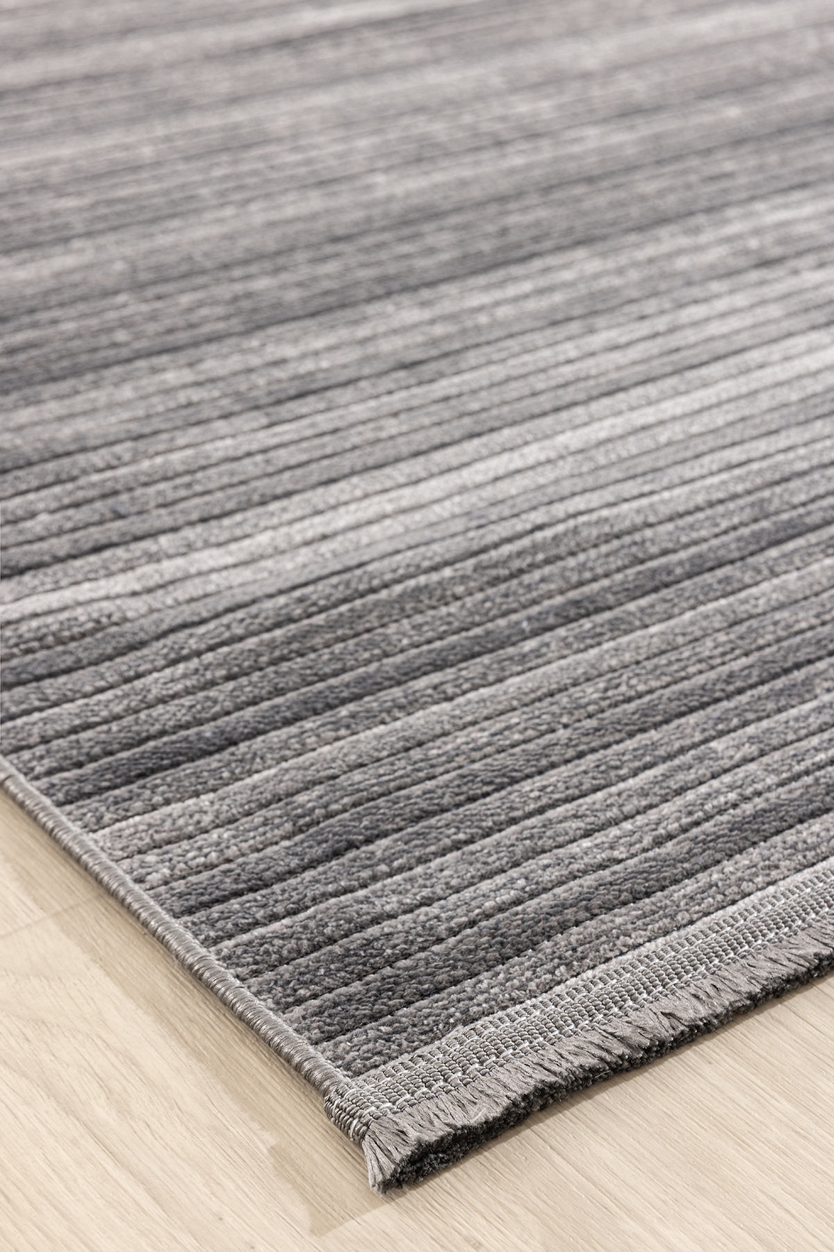 Koza Halı Stripe Anthracite Rug Non-Slip Base Living Room Living Room Entrance Carpet 33010A 200 x 290