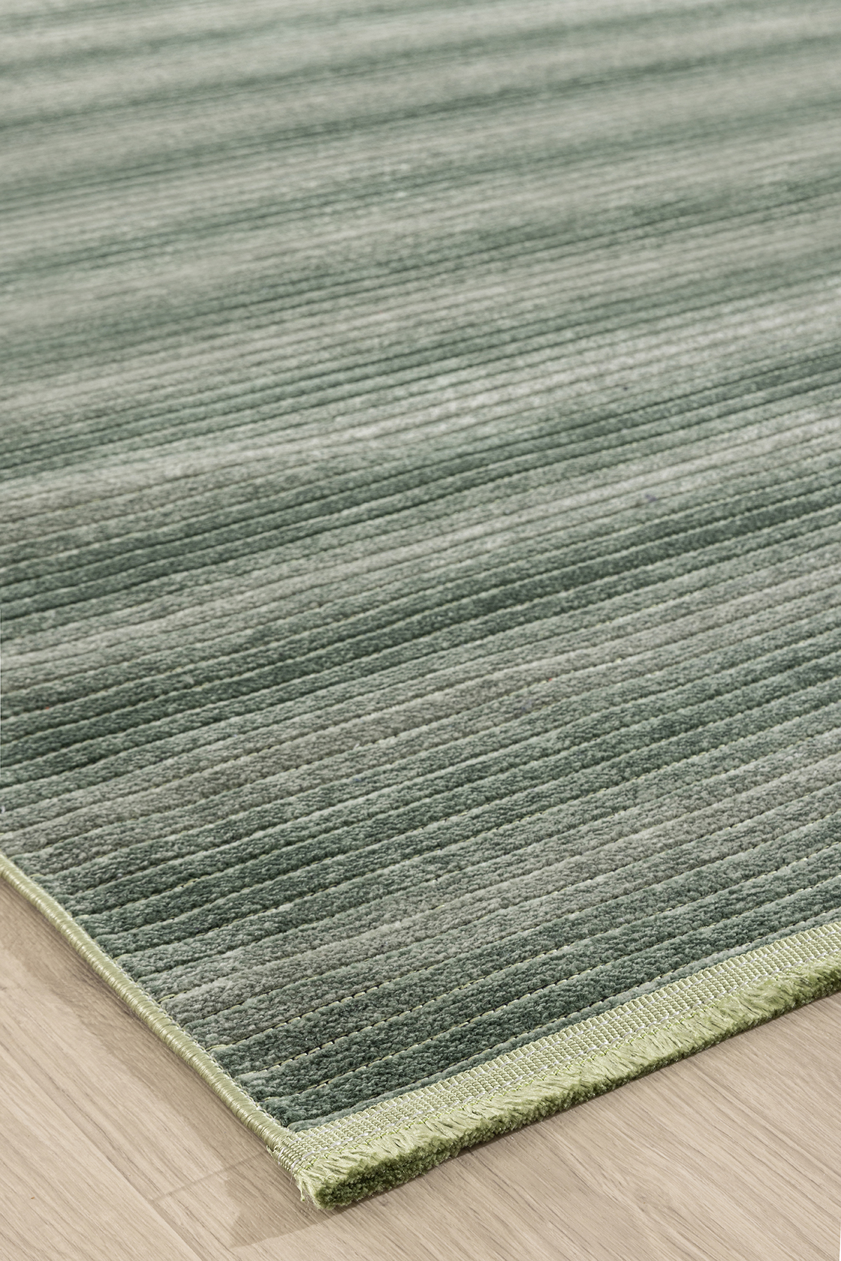Koza Halı Stripe Green Rug Non-Slip Base Living Room Living Room Entrance Carpet 33011A 60 x 100
