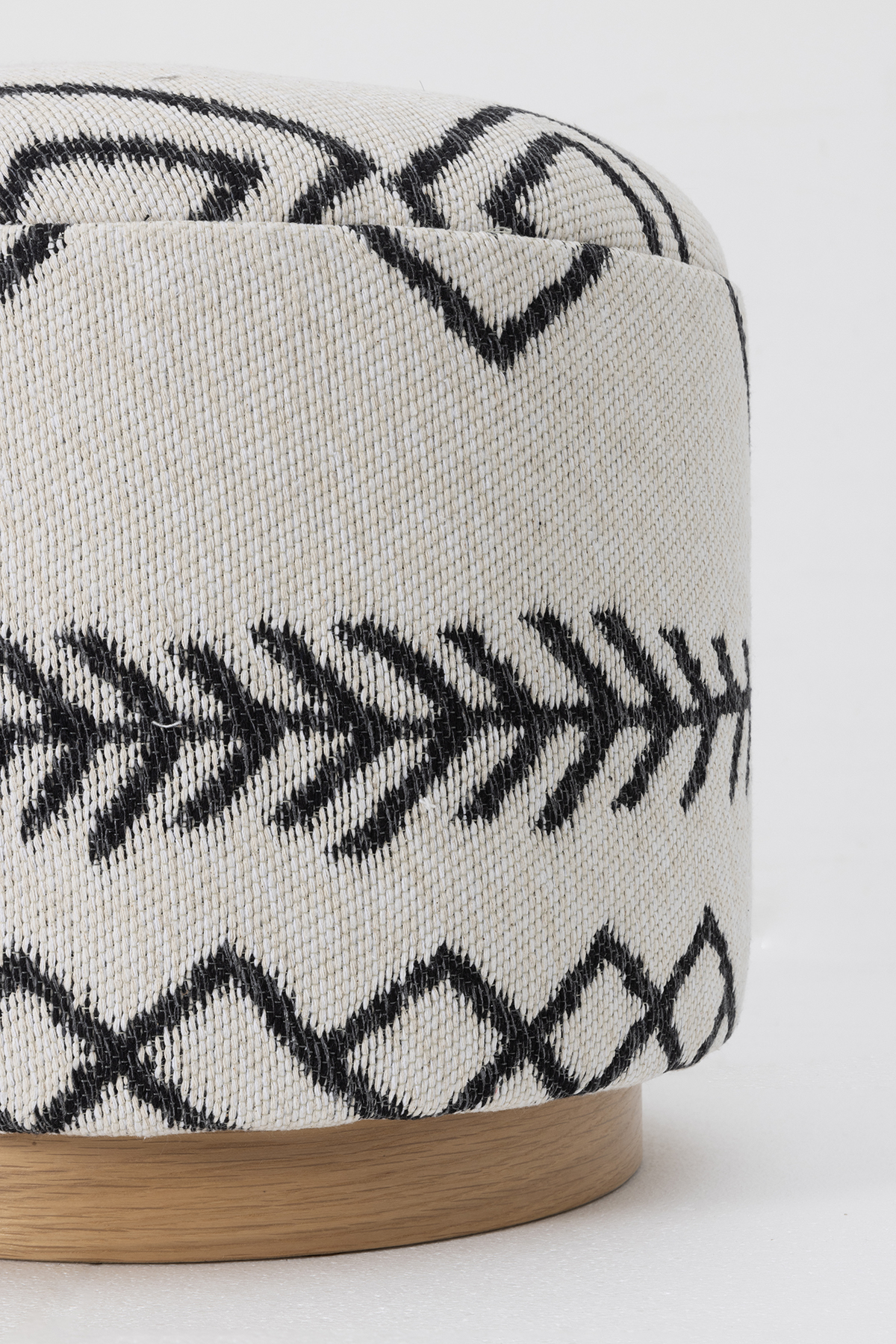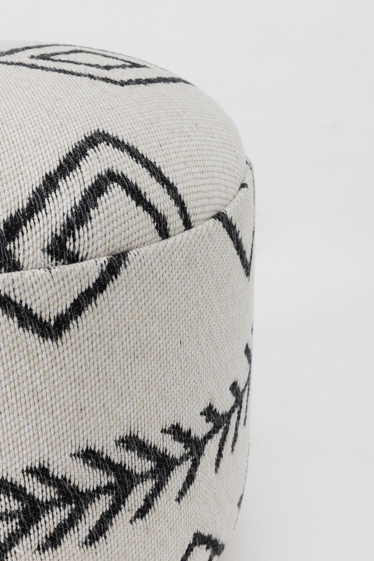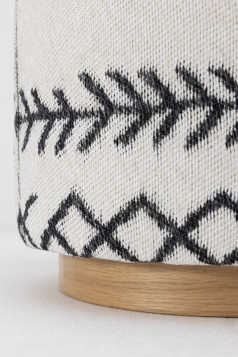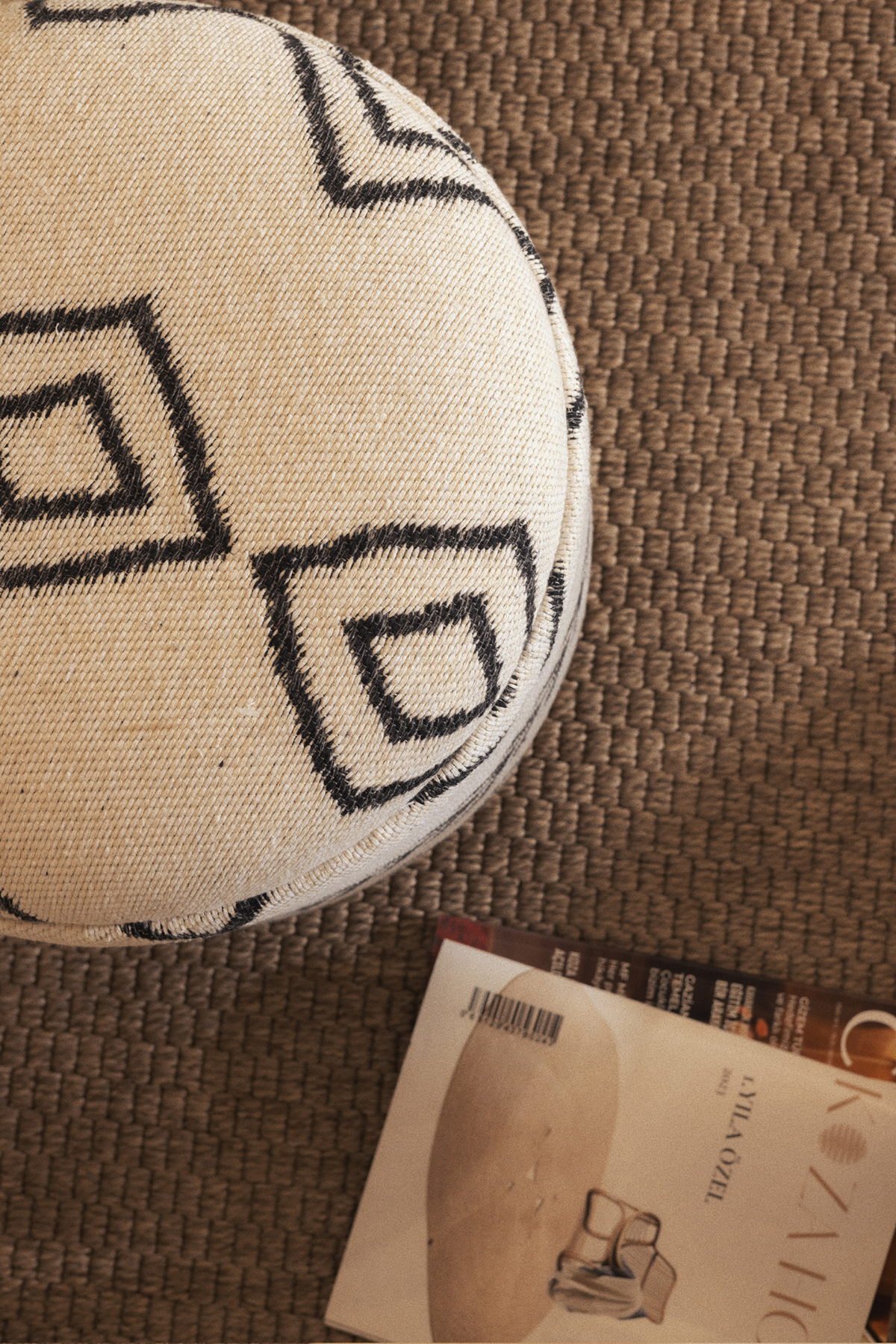BLISS 4281 BLACK ETHNIC PATTERNED CREAM POUFFE 45 X 42 CM Bliss 4281 Black Ethnic Patterned Cream Pouf offers both an aesthetic and functional touch. With a height of 42 cm and a diameter of 45 cm, this pouf can be used as both a comfort and a decorative element in your living room or bedroom. Its wooden legs are covered with natural varnish while preserving its natural appearance, which adds a rustic elegance to it. The 6 cm thick medium soft sponge does not deform or crush in long-term use, thus offering both durability and comfort. It can be easily integrated into modern and bohemian decoration styles with its black ethnic patterned fabric on cream. BLISS pouf is an ideal choice for those who want to add an elegant look and extra seating area to your room. It can be wiped with a damp cloth and left to dry. Washing is not recommended.