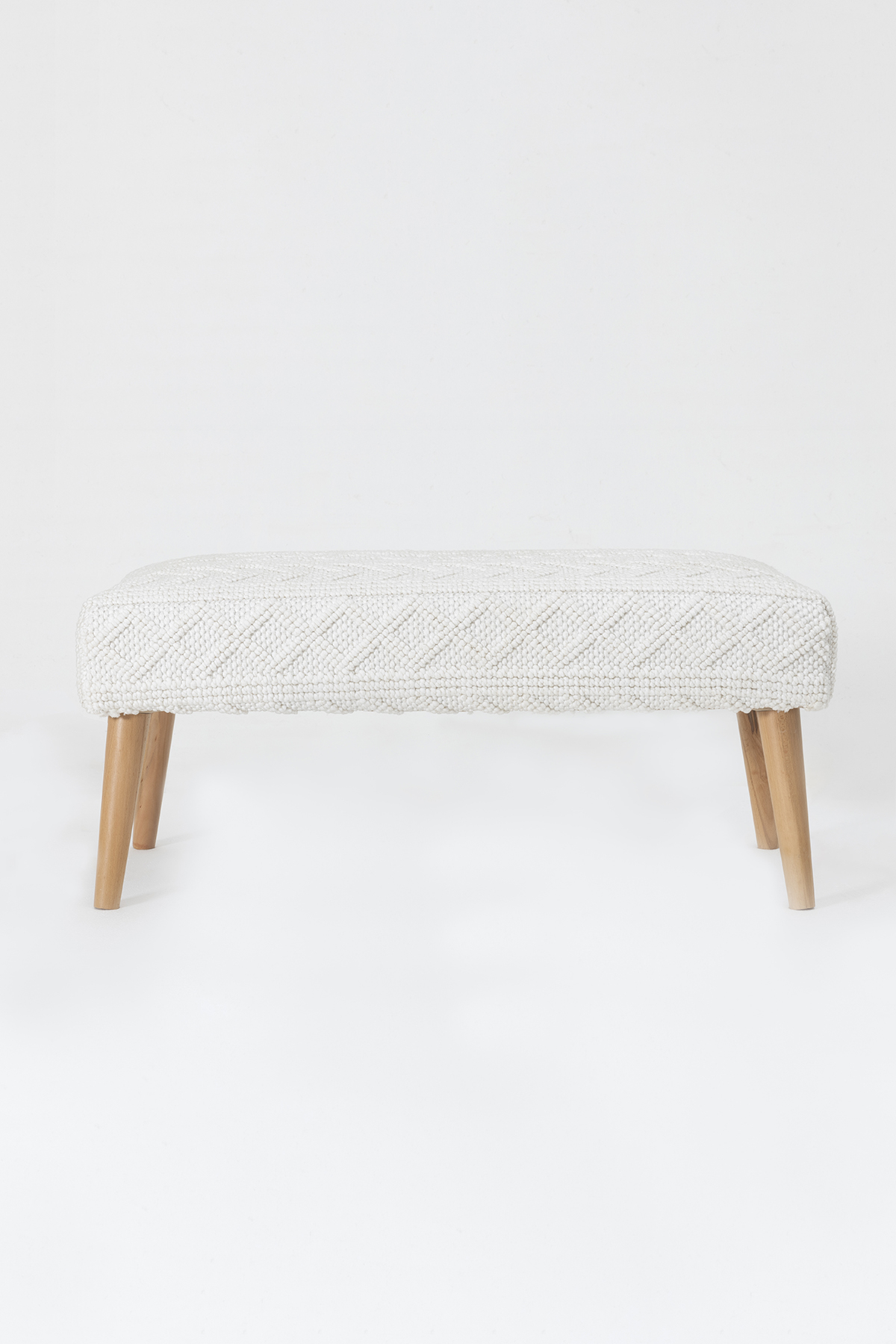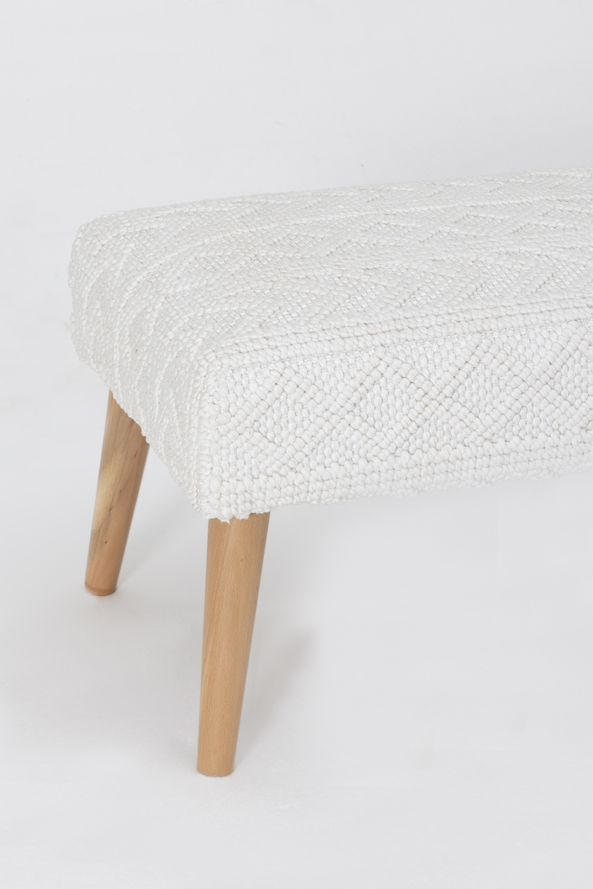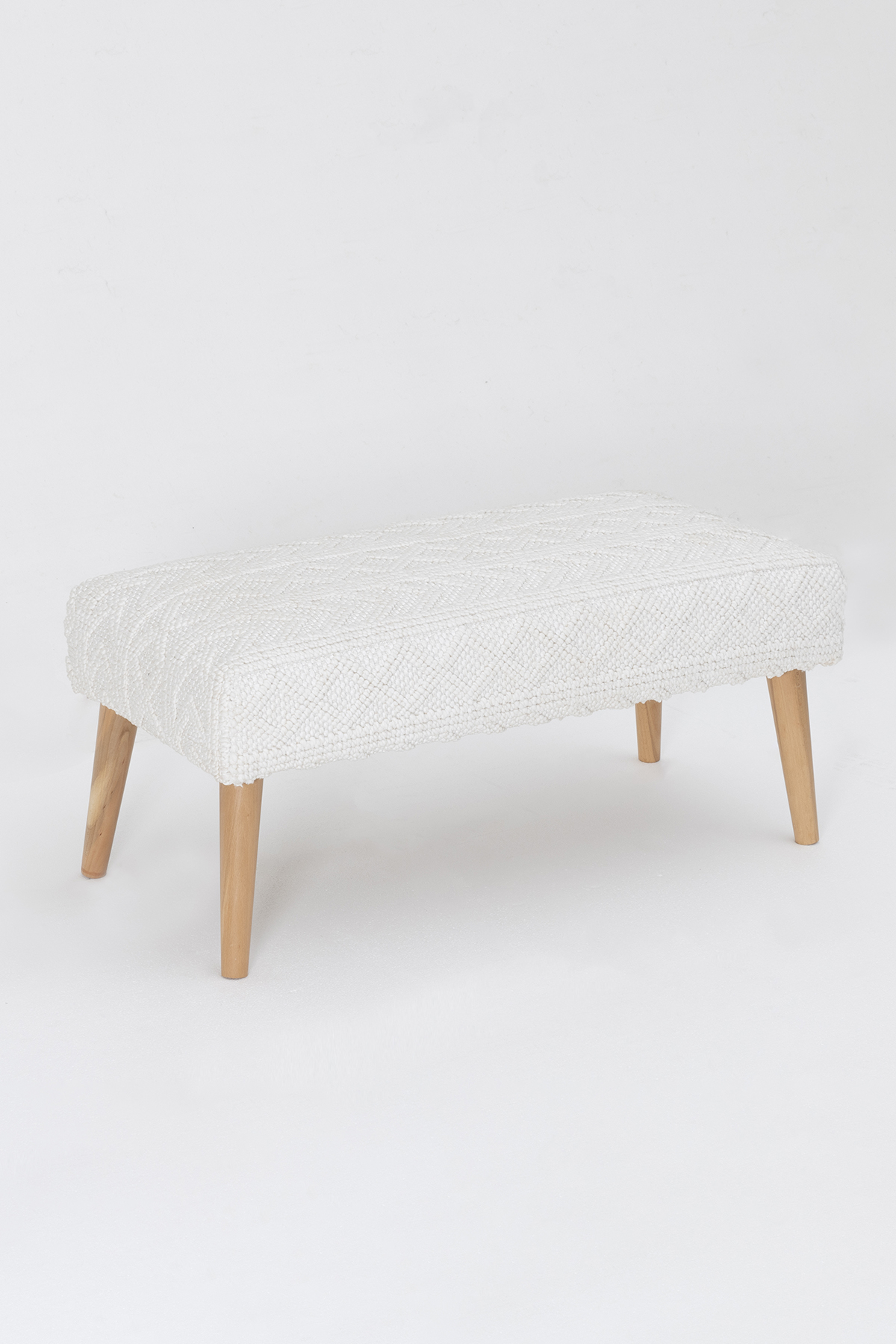 BLISS 4283 CREAM EMBOSSED TEXTURED BENCH 42 X 91 XH 42 CM Bliss 4283 Cream Embossed Textured Bench adds an elegant and functional touch to your living spaces. With its 42 cm height, 42 cm depth and 91 cm width, this bench can be used as a generous seating area or as a decorative object. Its beech legs are covered only with matte varnish to preserve the natural wood appearance and offer a rustic elegance. The 7 cm thick sponge is medium soft and does not deteriorate or crush in long-term use. It fits perfectly with modern, bohemian or eclectic styles with its geometric patterned self-embossed cream fabric. This bench, which you can use in your living room, bedroom or entrance area, is an ideal choice for those looking for both comfort and aesthetics. BLISS bench beautifies your space by adding warmth and style to your interior. It can be wiped with a damp cloth and left to dry. Washing is not recommended.