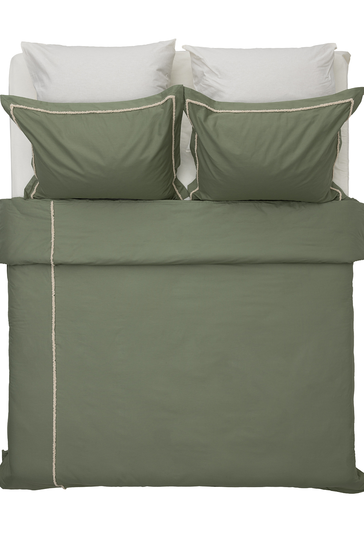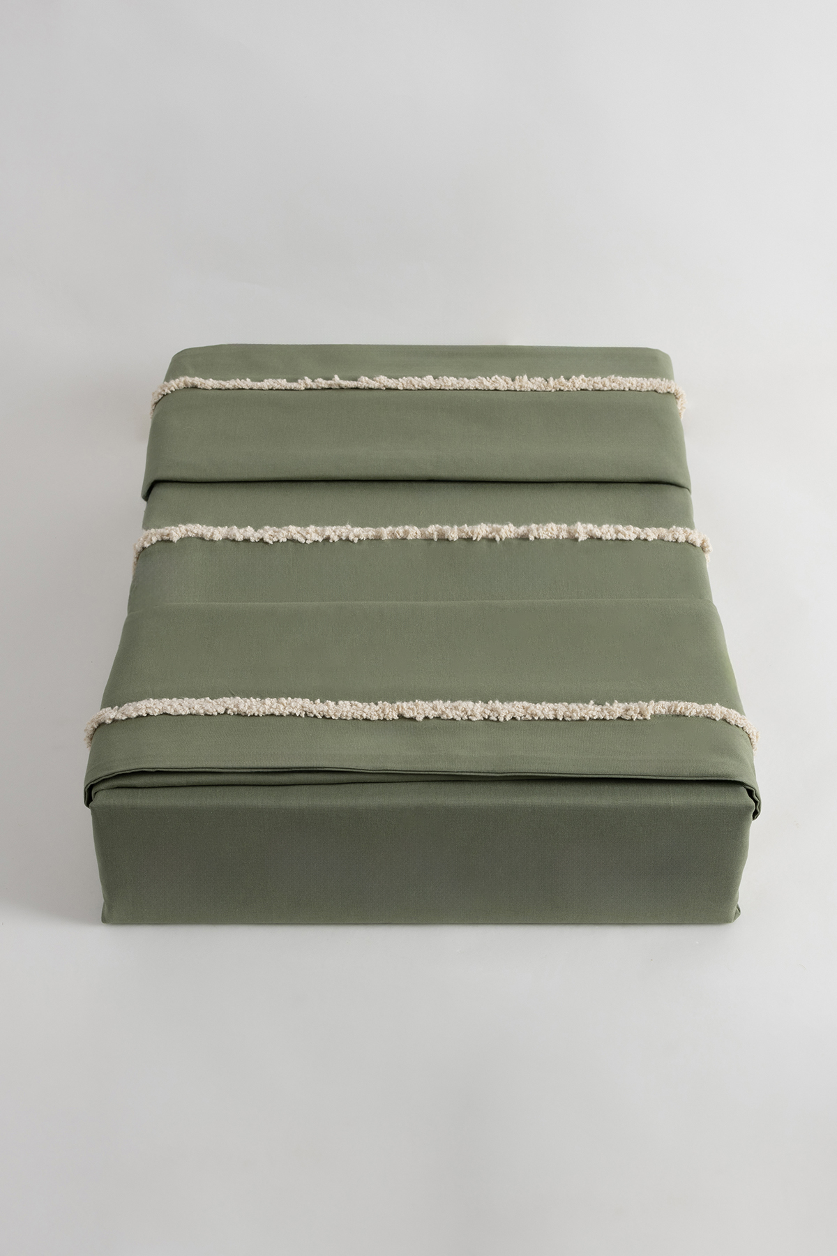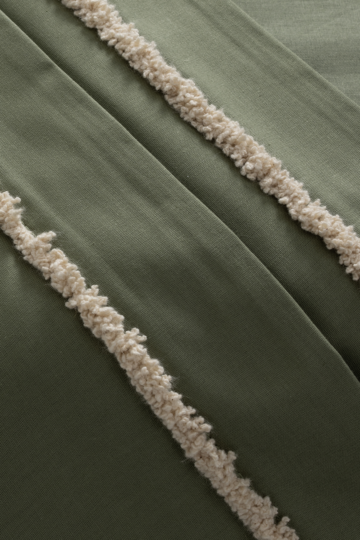 Boho Fringed Green Duvet Cover Set Double 200 x 220 7030A Boho Fringed Duvet Cover Set is designed to add an elegant atmosphere to your bedroom and balance elegance. Enriched with blue and green color options, this set has a size of 200x220 cm ideal for double beds. It also includes a 240x260 cm fitted sheet and 4 pieces of 50x70 pillowcases, offering a complete bed dressing set. Boho Fringed Duvet Cover Set combines elegance and comfort while decorating the bedroom with its simple and minimalist design. It offers a perfect option for those looking for aesthetics and functionality, and at the same time provides a soft and peaceful sleeping experience with its 100% cotton content. It renews your bedroom, allows you to forget your daily stress and fall into a comfortable night's sleep. It will be the right choice for those looking for a bohemian decoration element with cream fringe details. Care Recommendation Delicate wash at 30 degrees. To preserve the quality of the fabric, avoid washing with harsh chemicals such as bleach or alcohol. Bleaching is not allowed. Line drying is recommended. Dry cleaning is not recommended. Note: Actual colors may vary depending on lighting and monitor settings.