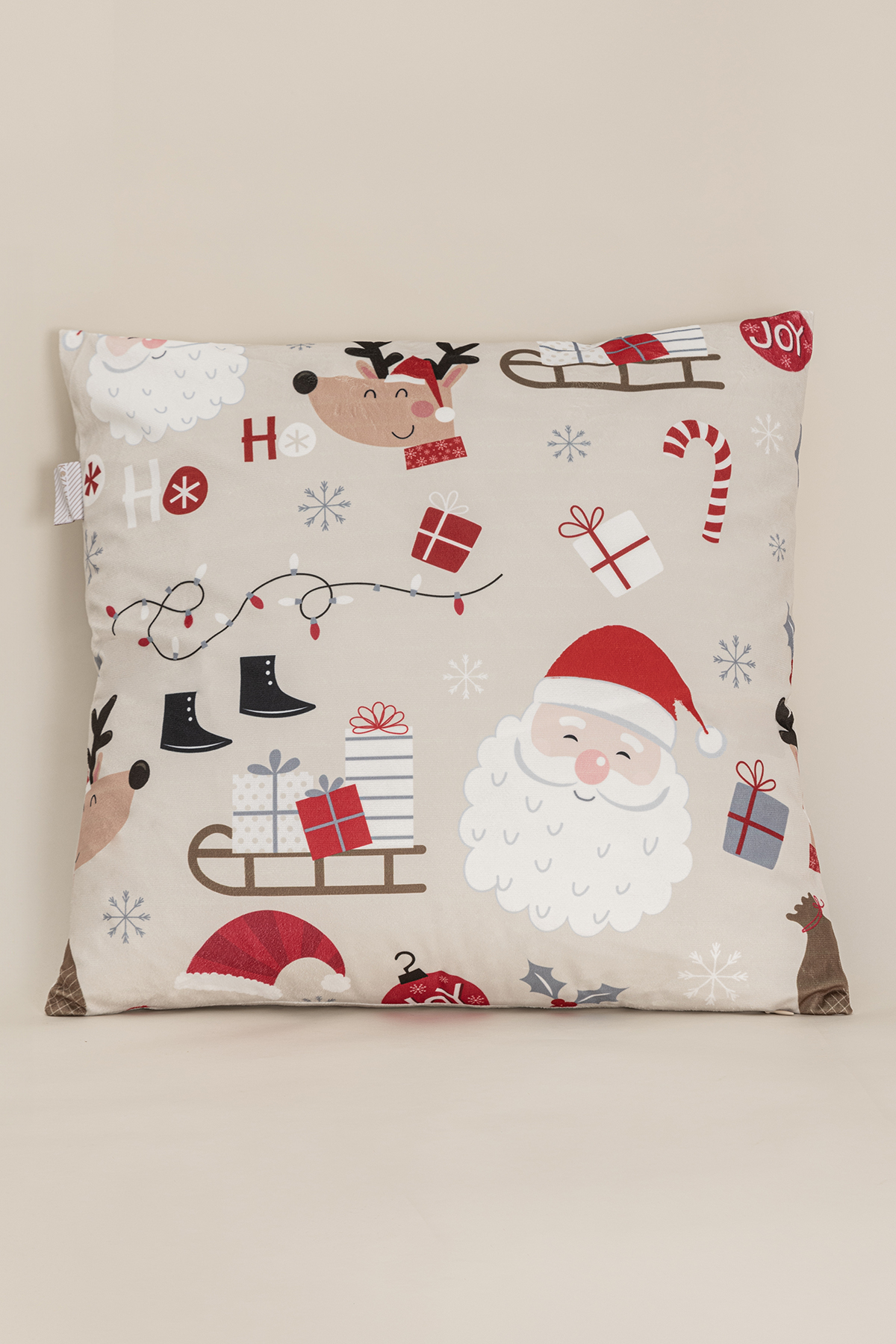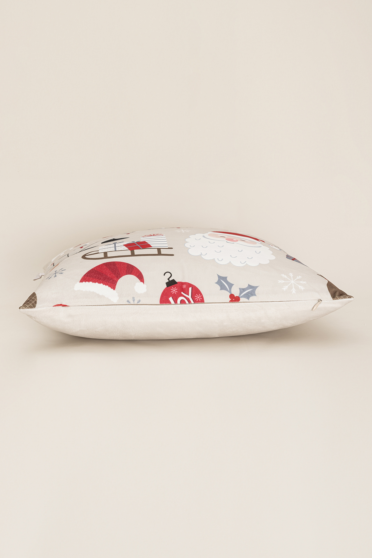 Charm Christmas Themed Special Colored Printed Beige Cushion 43X43 35265A Charm Christmas Themed Special Colored Printed Beige Cushion is a perfect choice to bring the Christmas spirit to your home. This 43x43 cm cushion stands out with its colorful mixed Christmas-themed special motif printed on a beige background. Its soft and durable 100% polyester fabric provides a comfortable seating area and is suitable for long-term use. The colorful Christmas-themed pattern, carefully prepared with the special digital printing technique, adds a warm atmosphere to your living room, bedroom or guest area by completing your New Year-themed decorations. It offers a practical use with its easy-to-clean structure. This stylish and fun cushion enriches your New Year decorations while also bringing joy to your home as a comfortable decorative element. You can wash the cover in a delicate program at 30 degrees. You can dry it by spreading it out. Avoid using bleach.