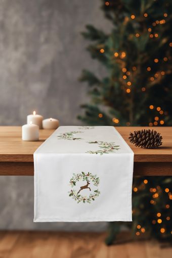 Charm Colorful Deer Printed Cream Runner 45X140 35260A Charm Colorful Deer Printed Cream Runner is an elegant and fun decorative piece that will perfectly complete your New Year's decorations. This runner, measuring 45x140 cm, brings the New Year's spirit to your tables with its colorful deer print on a cream background. Thanks to its 100% polyester structure, it is durable and easy to clean, and offers long-term use. Its modern and stylish design adds an elegant touch to your dining tables while bringing joy to the New Year's atmosphere in your home. It adapts to all kinds of New Year's decorations thanks to its colorful deer print. Offering practical use thanks to its durable structure and stain-resistant surface, this runner makes your tables both stylish and warm during your New Year's celebrations. Delicate washing at low temperature is recommended. You can dry by spreading. Avoid using bleach. You can dry by spreading. Avoid using bleach.