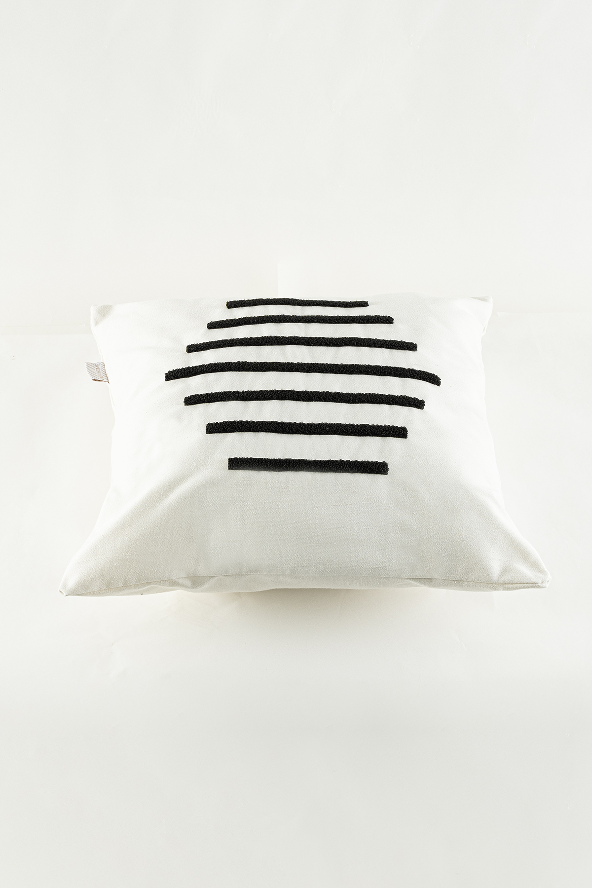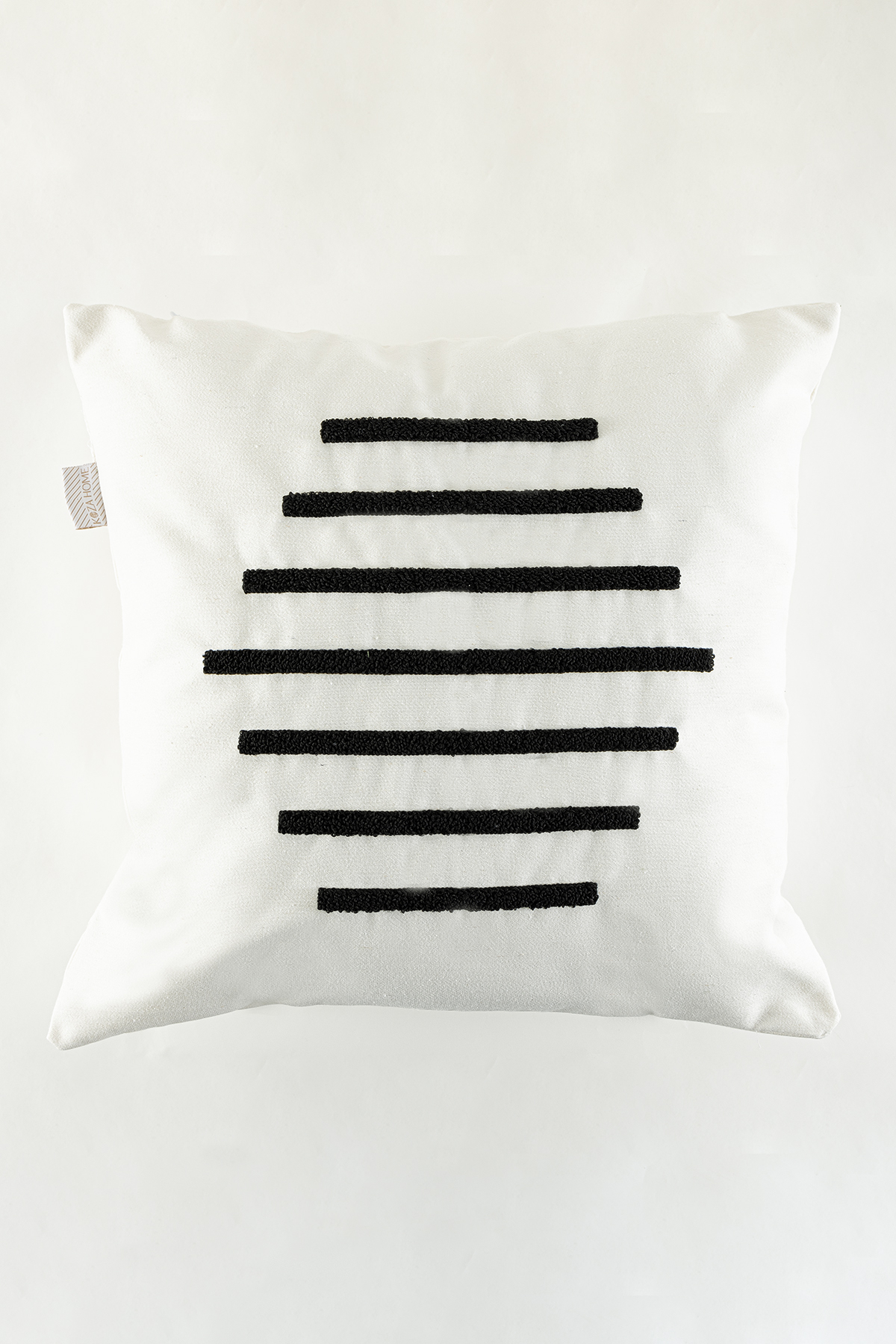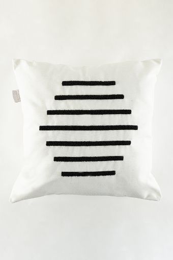 Koza Home Craft Black Stripe Patterned Beaded Fiber Filled Cushion 43 x 43 35306A 43 x 43