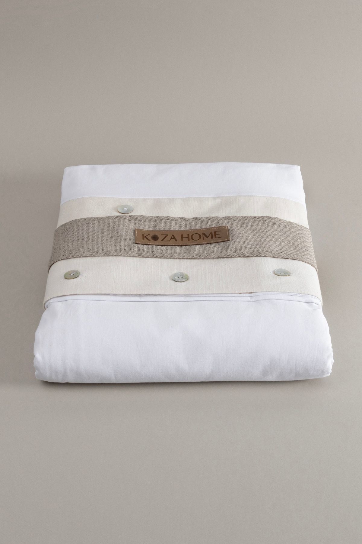 Dave Ivory Mother-of-Pearl Buttoned Double Duvet Cover Set, Where Elegance Meets Tranquility for a Luxurious Sleeping Experience! Transform your bedroom into a paradise of comfort and style with the Dave Ivory Mother-of-Pearl Buttoned Double Duvet Cover Set. Precisely crafted from high-quality cotton fabric, this set has an elegant ivory color and a generous size of 200x220 cm. Adding elegance to your space, special mother-of-pearl buttons increase the charm of the environment. Main Features: Made from high-quality cotton fabric, this duvet cover set promises both durability and a luxurious feel on your skin. The soft color palette radiates peace, creating a serene atmosphere that encourages relaxation and peaceful sleep. Special mother-of-pearl buttons elevate the overall aesthetics of your bedroom by adding a sophisticated touch. Ideal for those looking for a stylish touch in their bedroom, this duvet cover set effortlessly enhances the visual appeal of your space. Its simple and minimalist design complements a variety of decor styles, offering versatility and sophistication. Offering a soft and comfortable sleeping experience beyond its aesthetics, the duvet cover set allows you to wake up refreshed. Add quality to your sleeping experience with the perfect blend of elegance and comfort. Order today and leave yourself to the combination of aesthetics and comfort. Note: Actual colors may vary depending on lighting and monitor settings. It is recommended to wash at 30 degrees. Bleaching should not be done. It is recommended to iron at low temperature (Max 110). Dry cleaning should not be applied. Duvet Cover Size: 200cm x 220cm Sheet Size: 245cm x 255cm Pillowcase: 4 Pieces