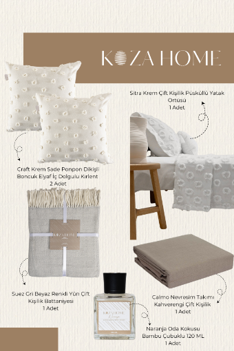 Dowry Set Cream Midi, Bedroom, Bedspread, Duvet Cover Set, Blanket, 2 Cushions, Room Fragrance