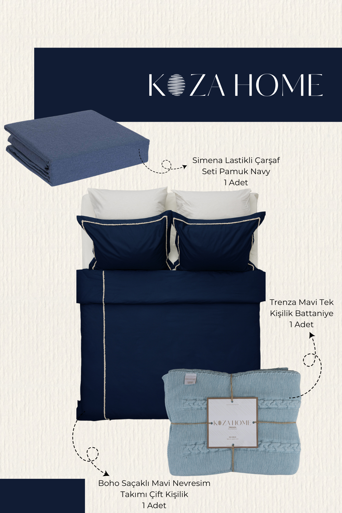 Dowry Set Navy Blue Mini, Bedroom Set, Double Duvet Cover Set, Sheet Set and Blanket