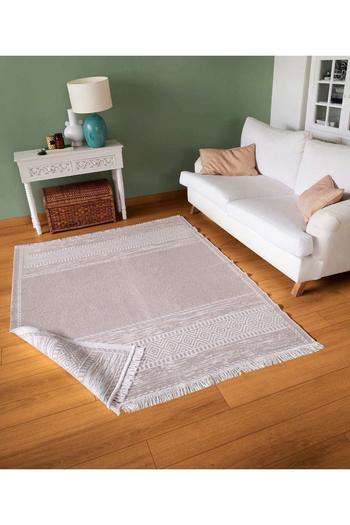 DUO PRODUCT FEATURES Add dimension to your living spaces with our Duo rugs, which blend the lines of the Scandinavian style with the harmonious unity of geometric shapes and can be used with different color designs on both sides. AREAS OF USAGE -Can be used in kitchen and balcony areas. MAINTENANCE AND CLEANING -Clean your rug daily with a brushed vacuum cleaner. Do not wipe with chemicals such as bleach, alcohol, etc. Do not wash it yourself, wipe it with a wet cloth and ventilate it. Sweep your rug in the direction of pile. Do not leave sharp, hard, heavy objects and items placed on the rug in the same place for a long time. When not in use, store your rug rolled up, away from moisture and vertically. Do not expose it to direct sunlight. The above reasons and stains during use exclude your rug from warranty. TECHNICAL INFORMATION -100% Cotton -195,000 knots/m2 -1300 gr/m2 SIZES 160x230 120x180 80x300 80x150 60x100