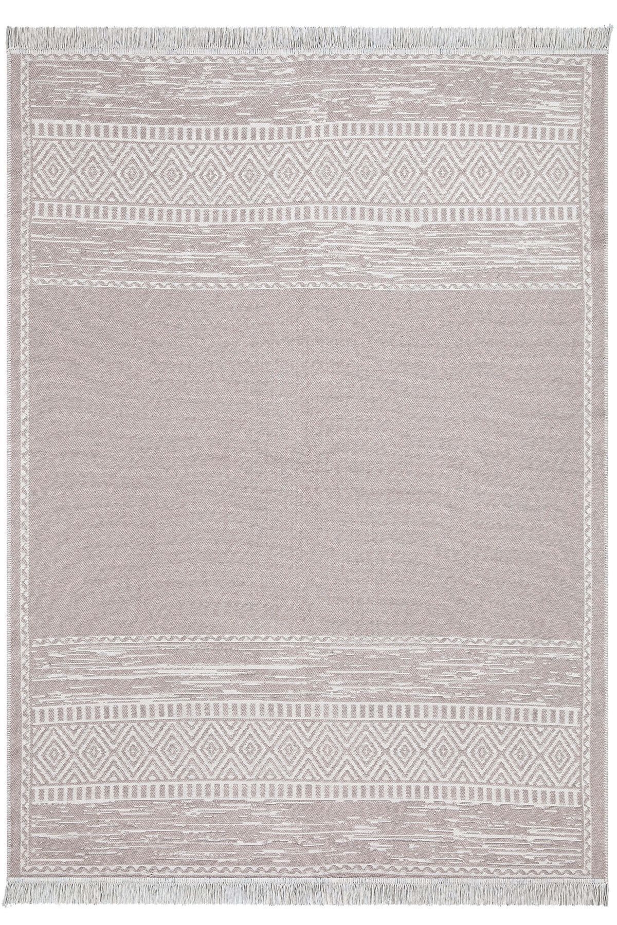 Koza Home Duo White Beige Double Sided Washable Woven Rug 23003A 80 x 150