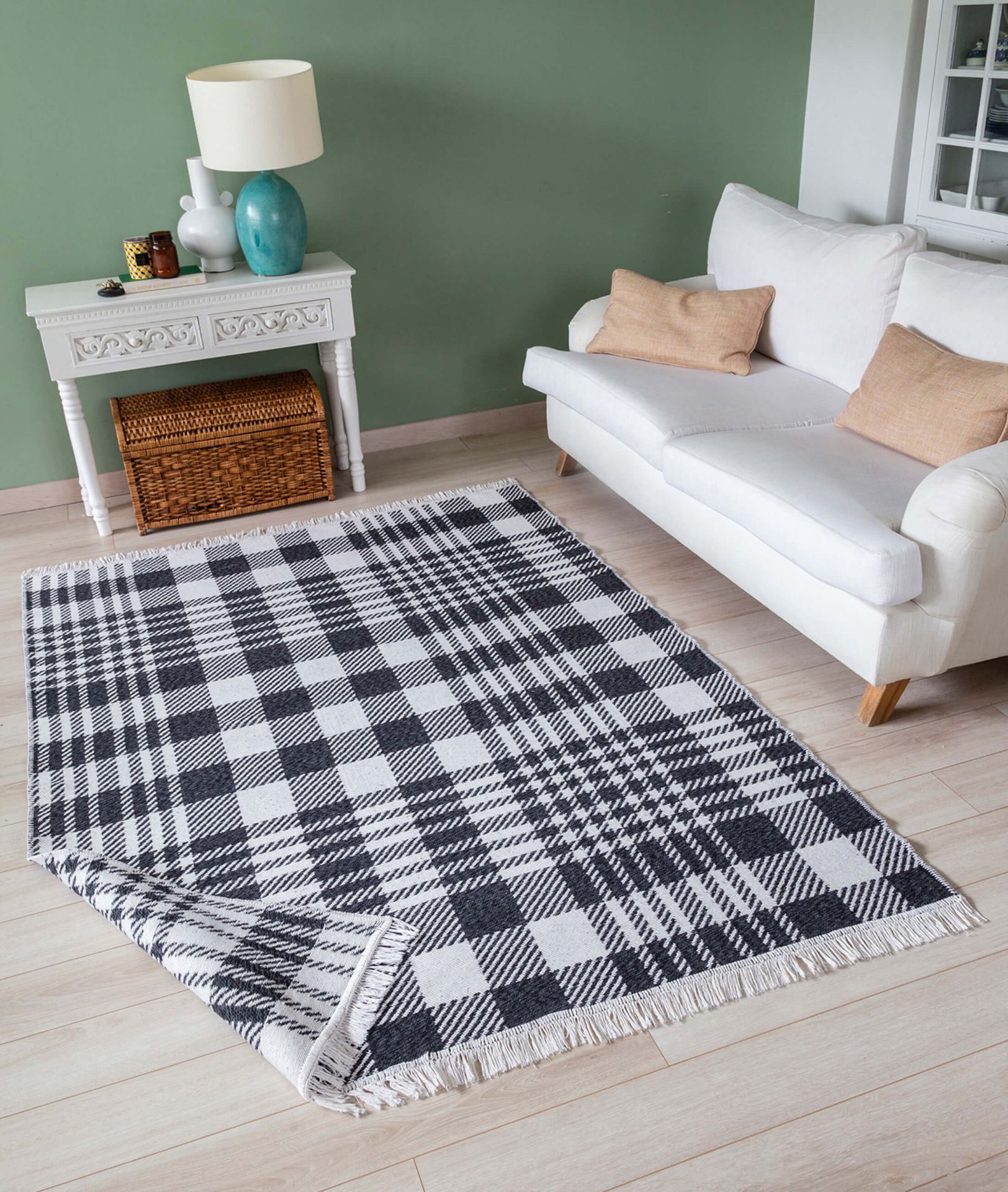 DUO PRODUCT FEATURES Add dimension to your living spaces with our Duo rugs, which blend the lines of the Scandinavian style with the harmonious unity of geometric shapes and can be used with different color designs on both sides. AREAS OF USAGE -Can be used in kitchen and balcony areas. MAINTENANCE AND CLEANING -Clean your rug daily with a brushed vacuum cleaner. Do not wipe with chemicals such as bleach, alcohol, etc. Do not wash it yourself, wipe it with a wet cloth and ventilate it. Sweep your rug in the direction of pile. Do not leave sharp, hard, heavy objects and items placed on the rug in the same place for a long time. When not in use, store your rug rolled up, away from moisture and vertically. Do not expose it to direct sunlight. The above reasons and stains during use exclude your rug from warranty. TECHNICAL INFORMATION -100% Cotton -195,000 knots/m2 -1300 gr/m2 SIZES 160x230 120x180 80x300 80x150 60x100