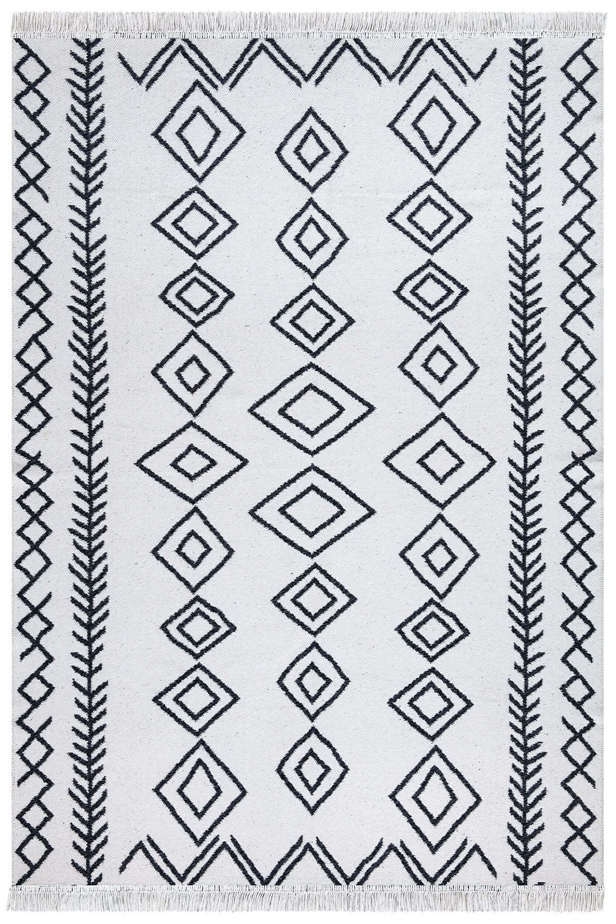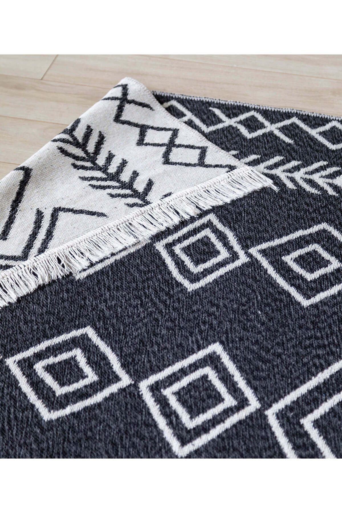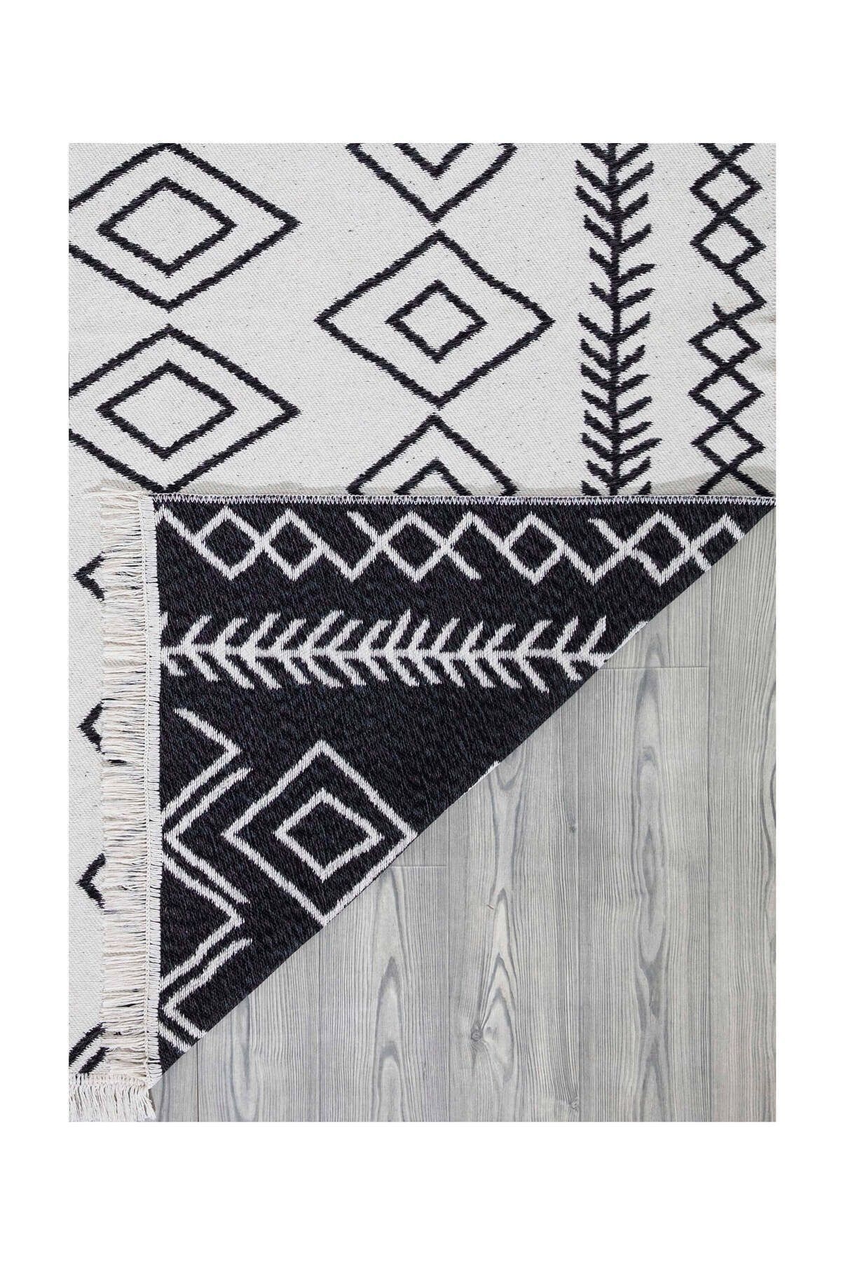 Koza Home Duo White Black Double Sided Washable Woven Rug 23000A 80 x 300