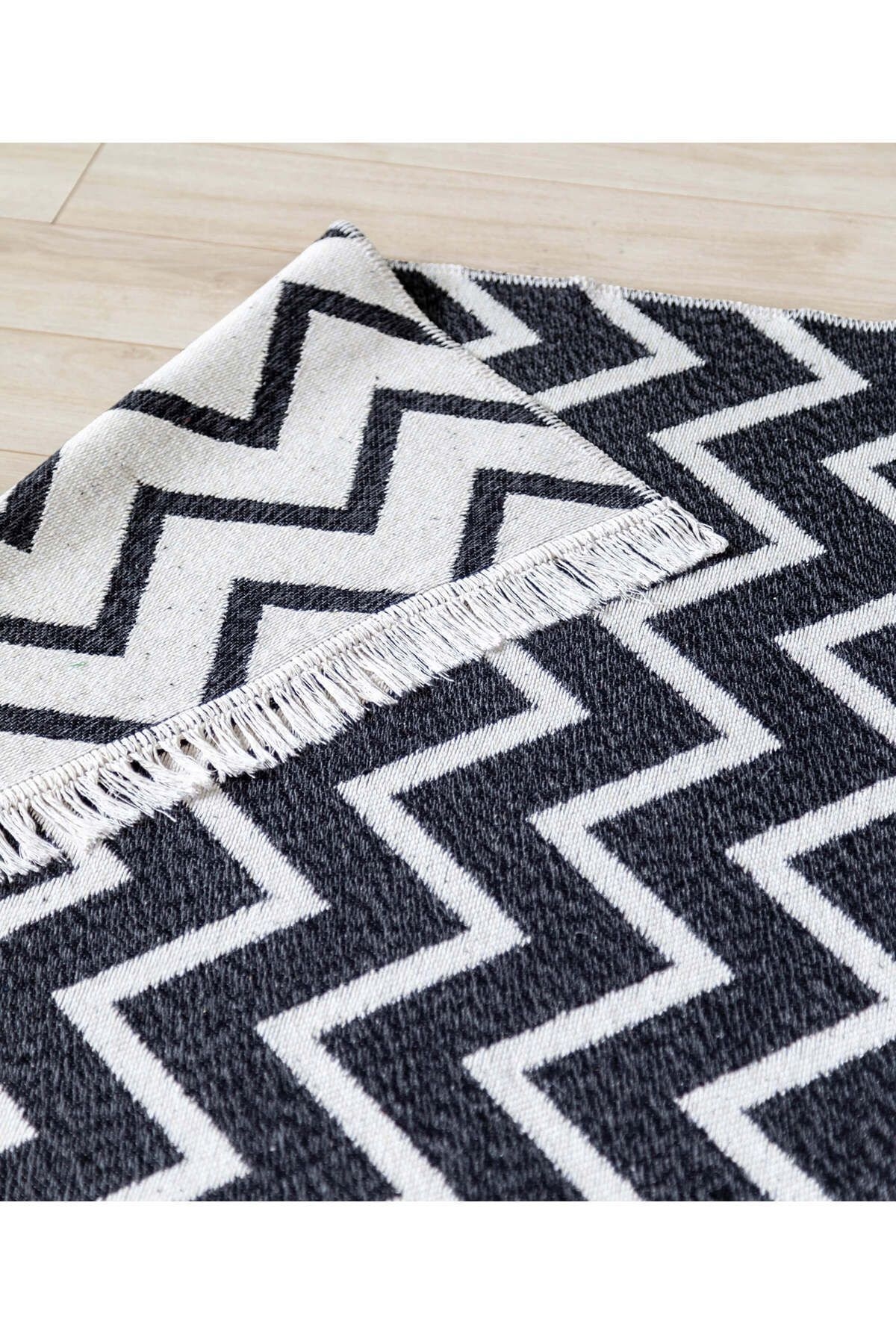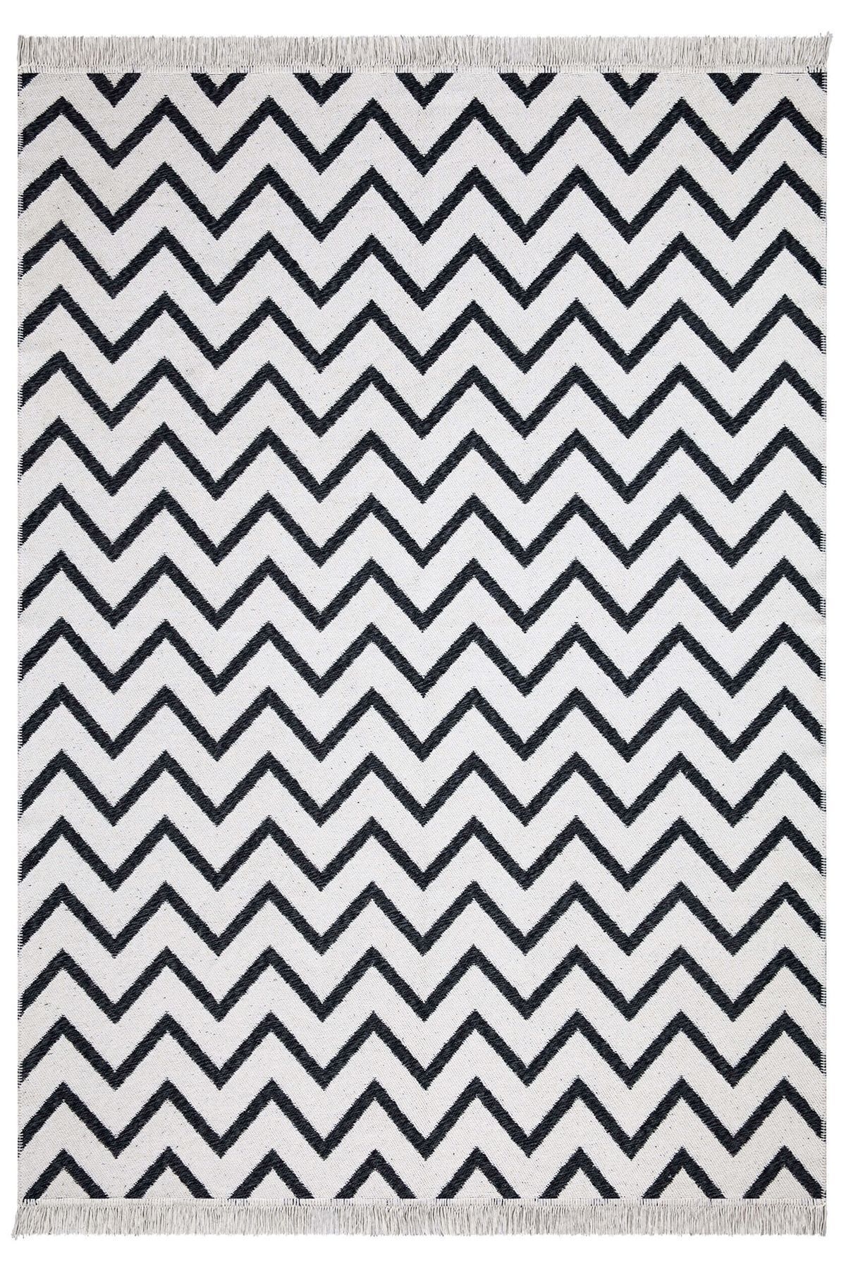 Koza Home Duo White Black Double Sided Washable Woven Rug 23002A 80 x 300