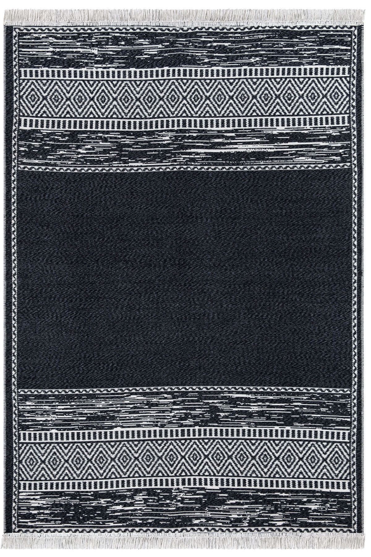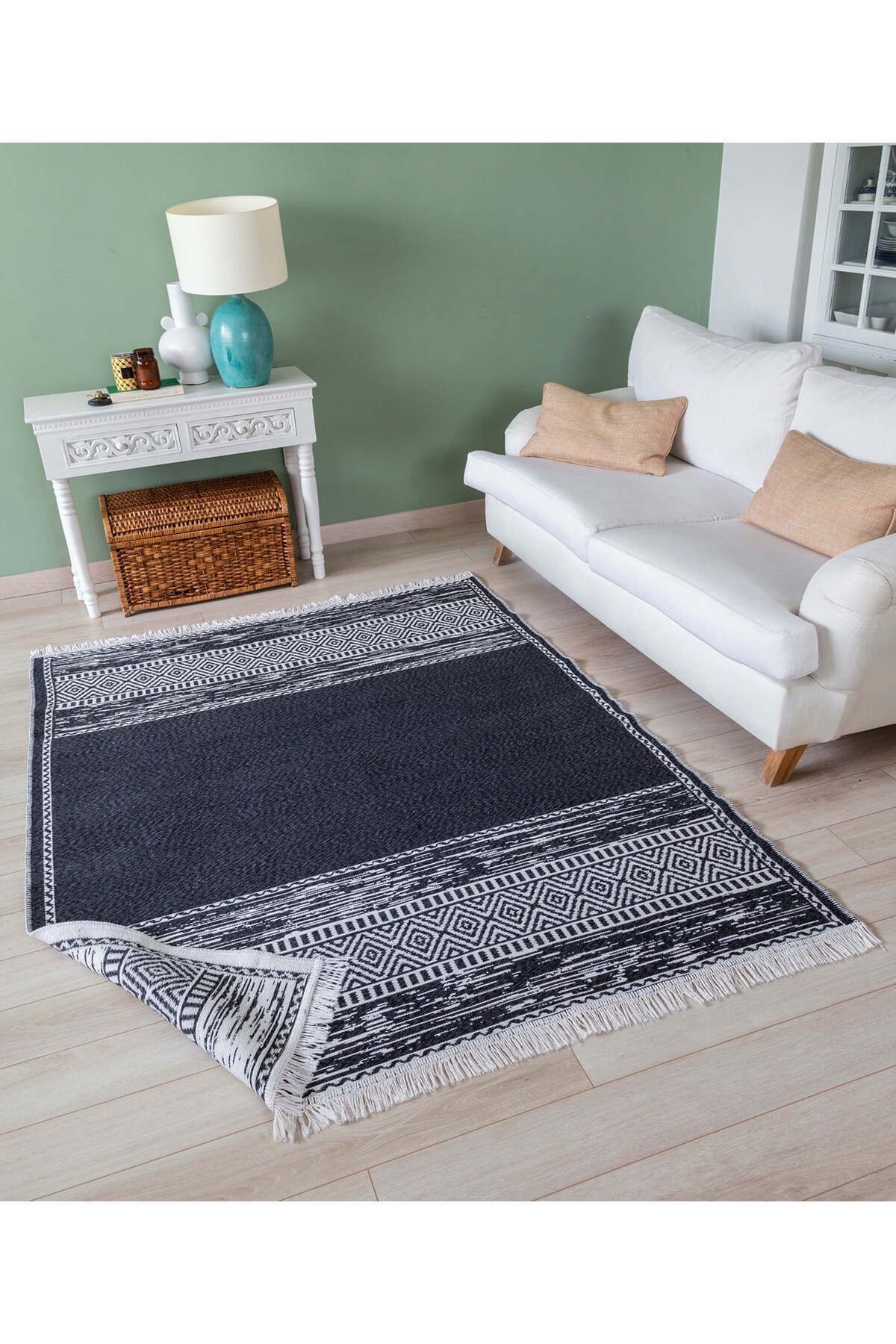 Koza Home Duo White Black Double Sided Washable Woven Rug 23003A 60 x 100