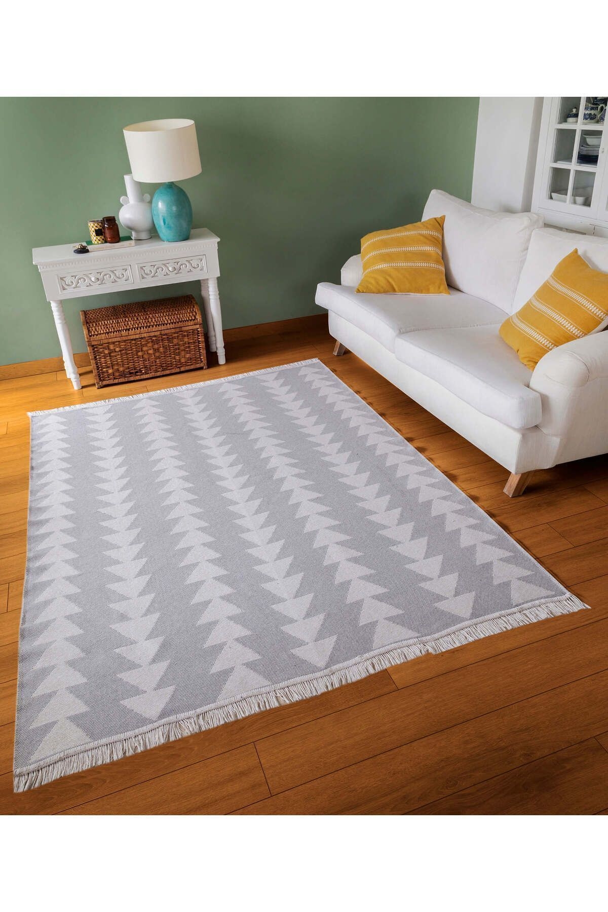 Koza Home Duo White Gray Double Sided Washable Woven Rug 22994A 120 x 180