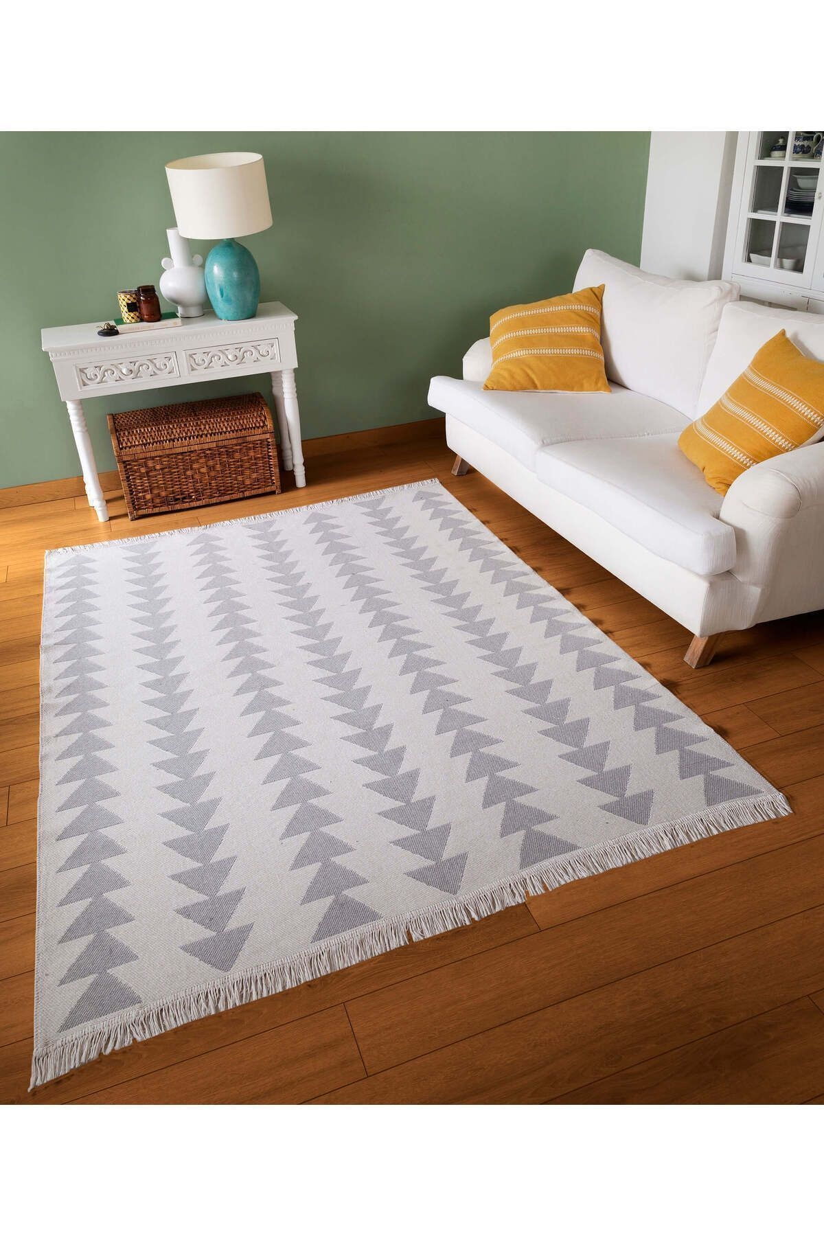 DUO PRODUCT FEATURES Add dimension to your living spaces with our Duo rugs, which blend the lines of the Scandinavian style with the harmonious unity of geometric shapes and can be used with different color designs on both sides. AREAS OF USAGE -Can be used in kitchen and balcony areas. MAINTENANCE AND CLEANING -Clean your rug daily with a brushed vacuum cleaner. Do not wipe with chemicals such as bleach, alcohol, etc. Do not wash it yourself, wipe it with a wet cloth and ventilate it. Sweep your rug in the direction of pile. Do not leave sharp, hard, heavy objects and items placed on the rug in the same place for a long time. When not in use, store your rug rolled up, away from moisture and vertically. Do not expose it to direct sunlight. The above reasons and stains during use exclude your rug from warranty. TECHNICAL INFORMATION -100% Cotton -195,000 knots/m2 -1300 gr/m2 SIZES 160x230 120x180 80x300 80x150 60x100