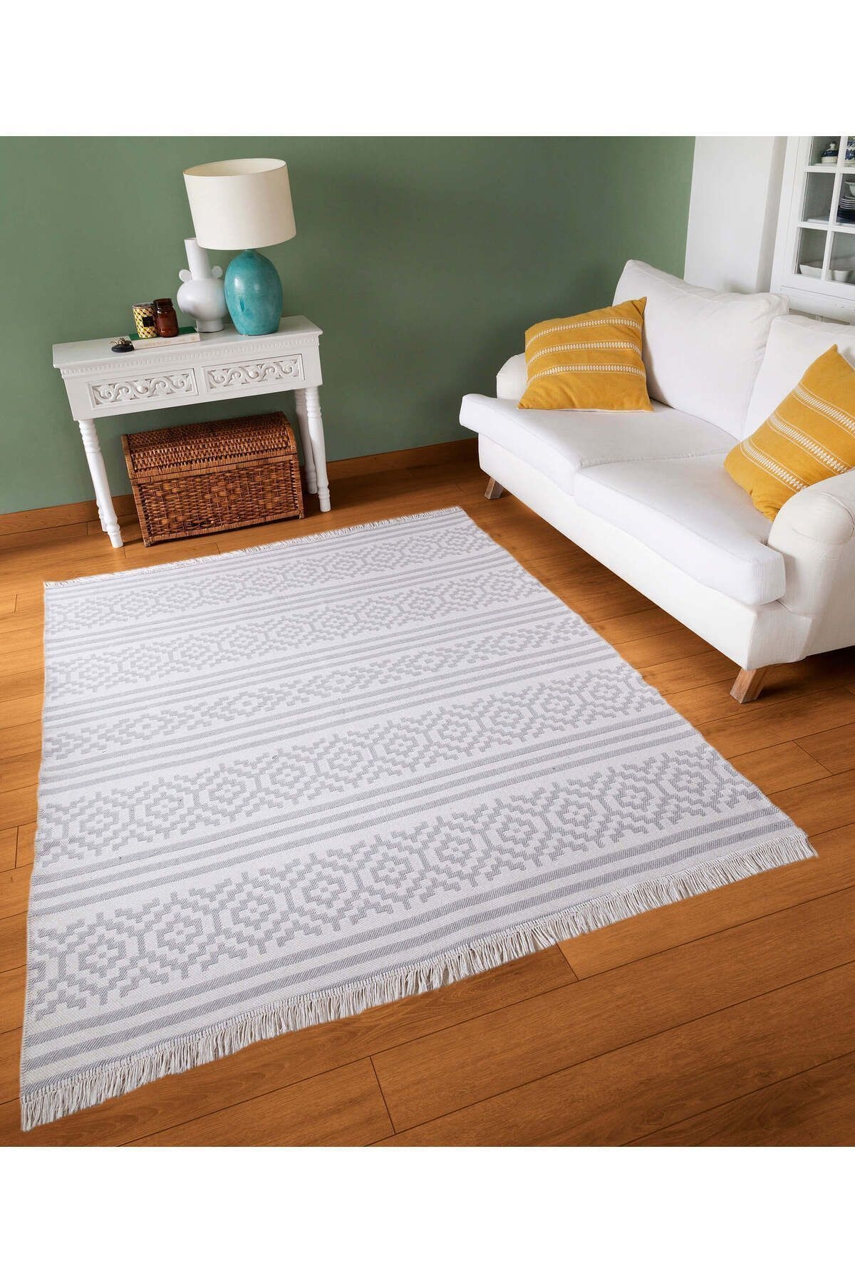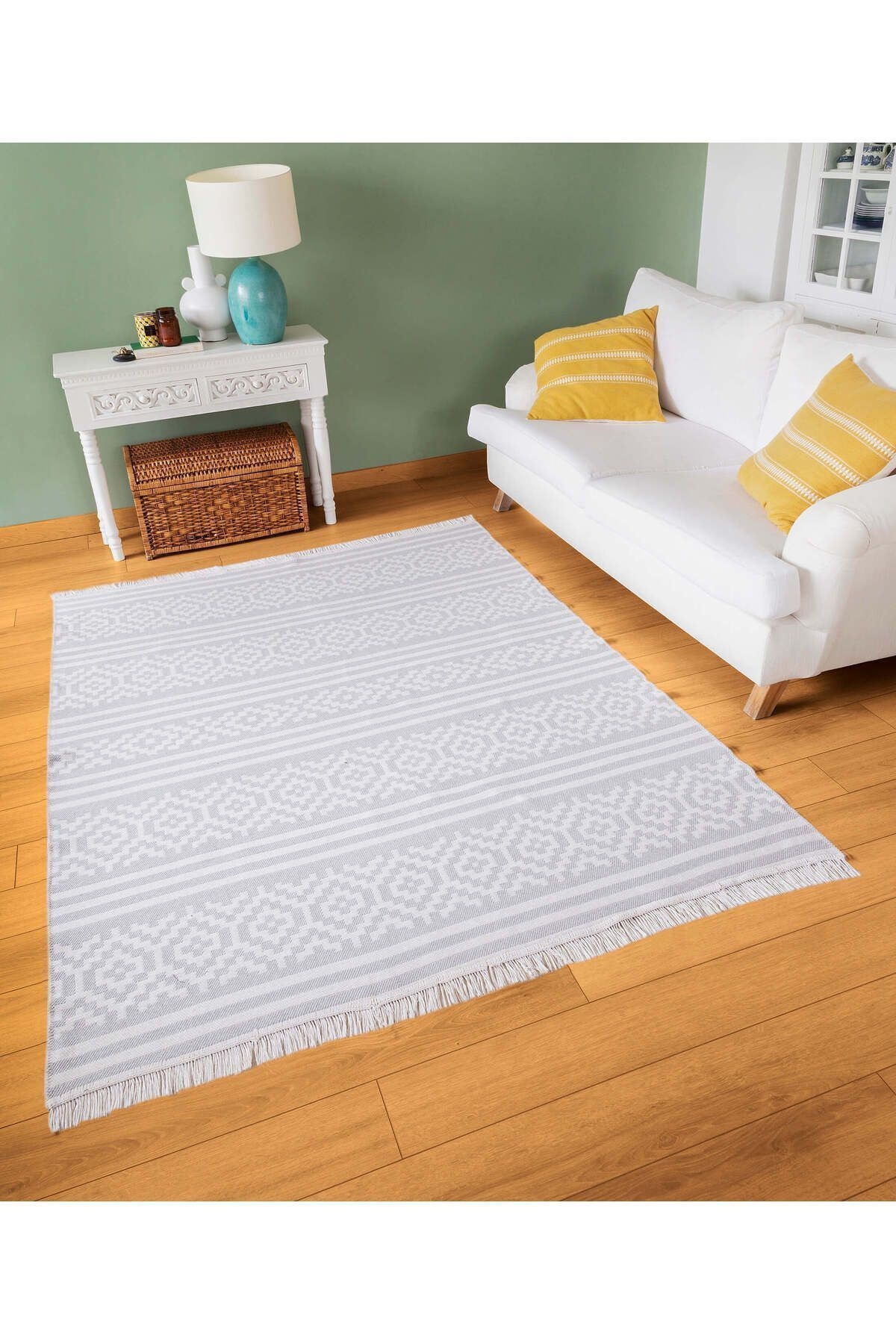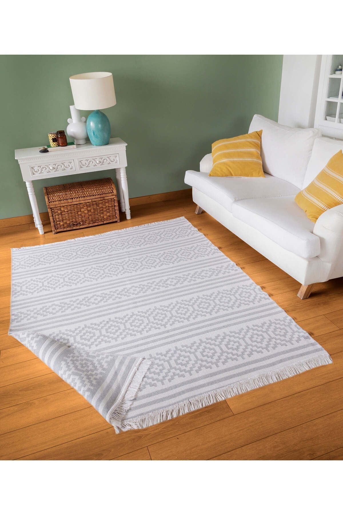 Koza Home Duo White Gray Double Sided Washable Woven Rug 22996A 80 x 150