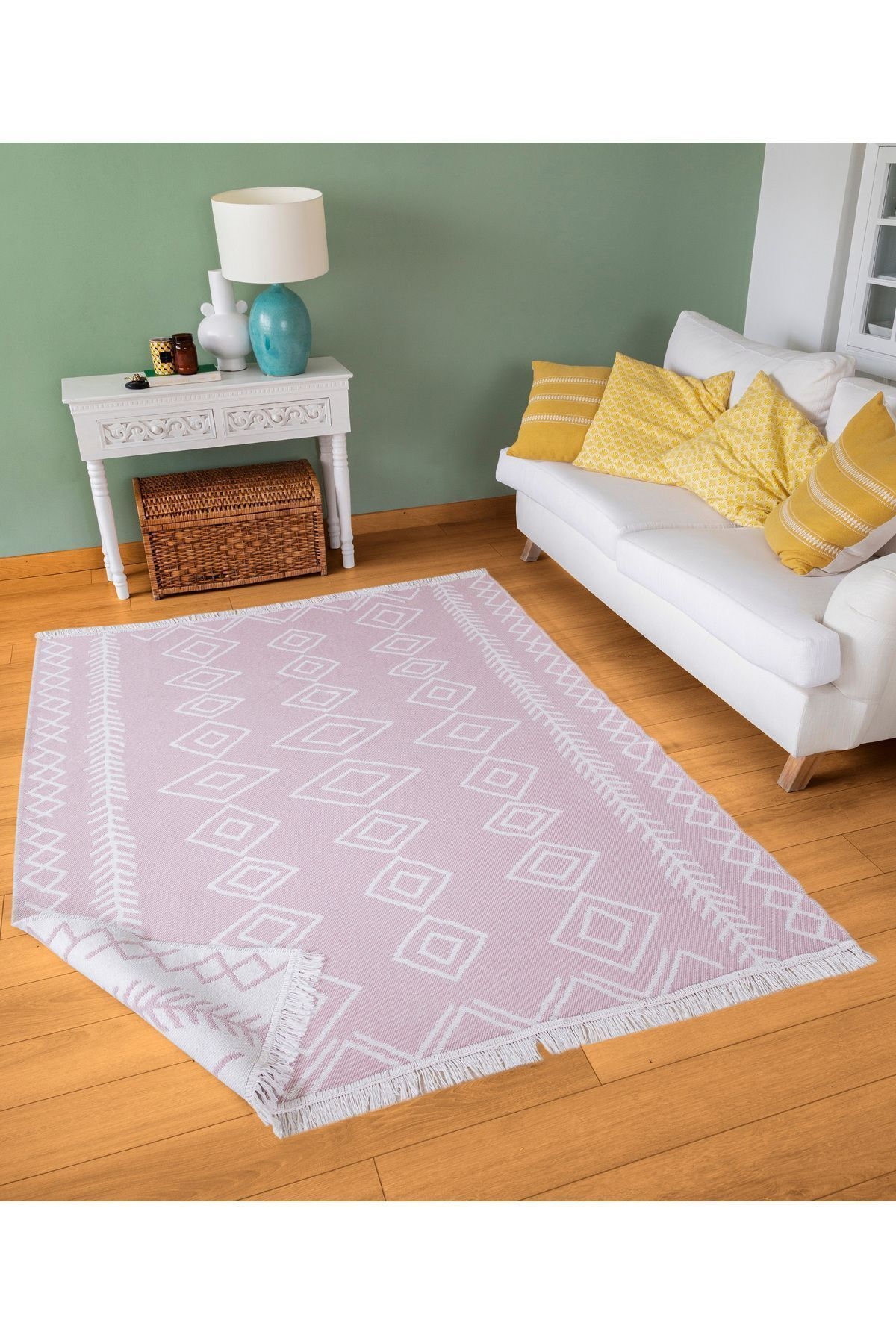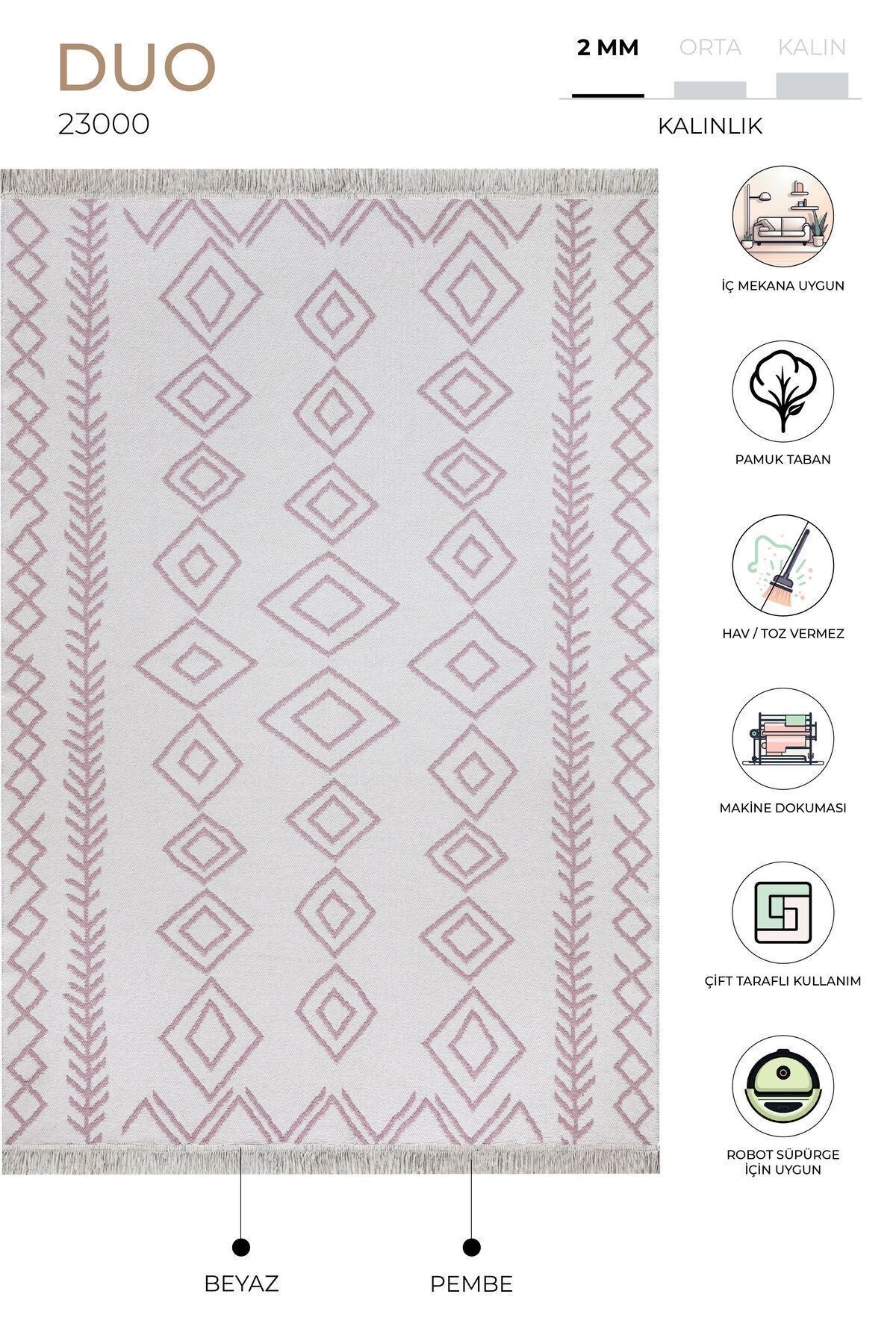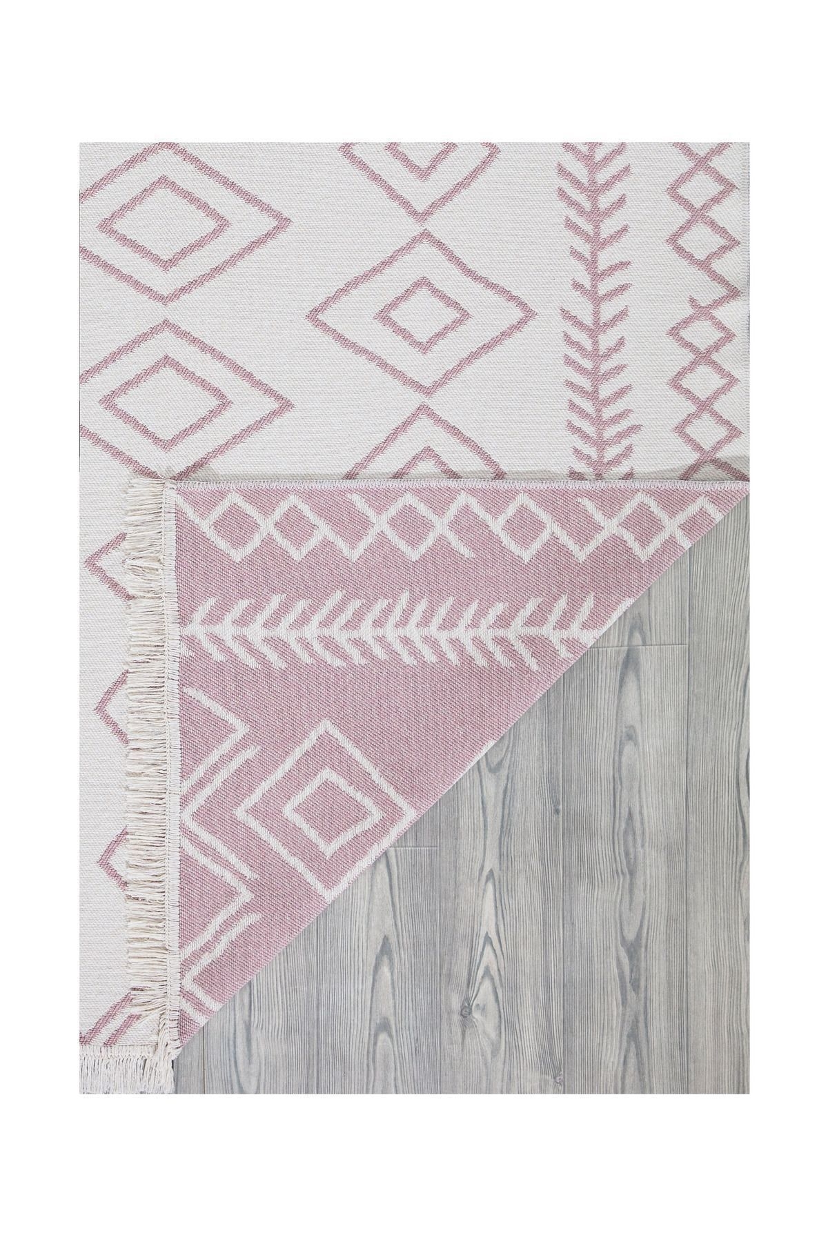 Koza Home Duo White Pink Double Sided Washable Woven Rug 23000A 80 x 300