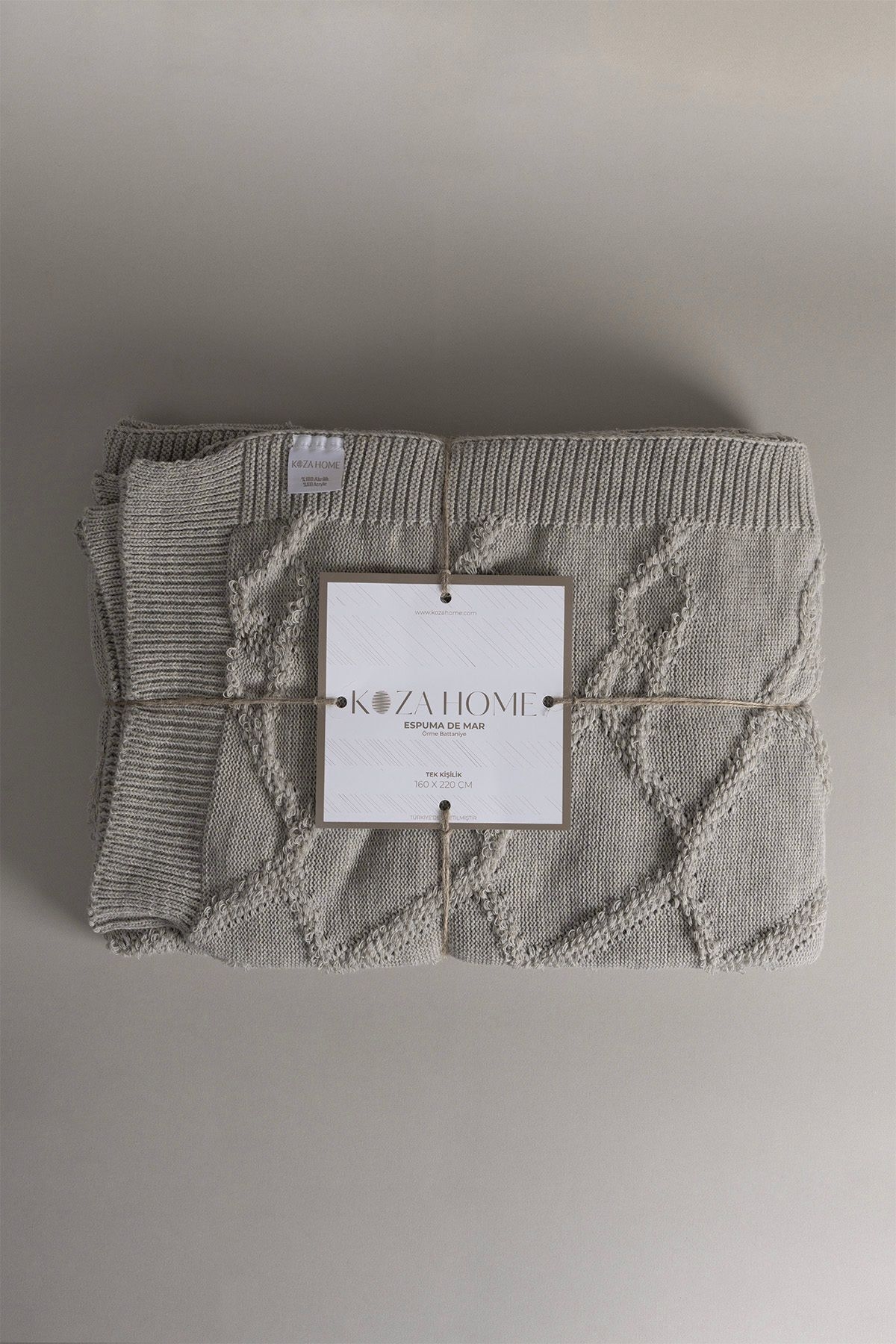 PRODUCT FEATURES Our Koza Home Espuma model product is 100% acrylic and its soft texture warms you up on cold winter days. Thanks to the structure of the product, both sides can be used. This model from our Espuma Blanket group has different color options and since its fabric structure is one of the least breathable fabrics, its heat retention ability is higher than other fabrics. It can be used as a shawl on places such as armchairs, chairs, pouffe armchairs, and you can add modernity and elegance to the environment. You can match your duvet cover sets by spreading it on your beds or bases. AREAS OF USAGE - It can be used as a shawl or blanket on double or single armchairs, armchairs, pouffe armchairs, chairs, garden chairs, beds or base duvet covers. MAINTENANCE AND CLEANING Your blanket can be washed at 30 degrees machine setting. Do not wash with chemicals such as bleach, alcohol, etc. Do not expose to direct sunlight during the drying process. The above reasons and stains during use exclude your blanket from the warranty. TECHNICAL INFORMATION - 100% Acrylic - It is more durable because it is made with special machine knitting. - It provides more heat because it has less breathability. - Both Sides Can Be Used. - Special Color Segment SIZE 130 x 170, 160 x 220, 200 x 220 COLORS Gray, Mink, Blue, Navy Blue, Cream