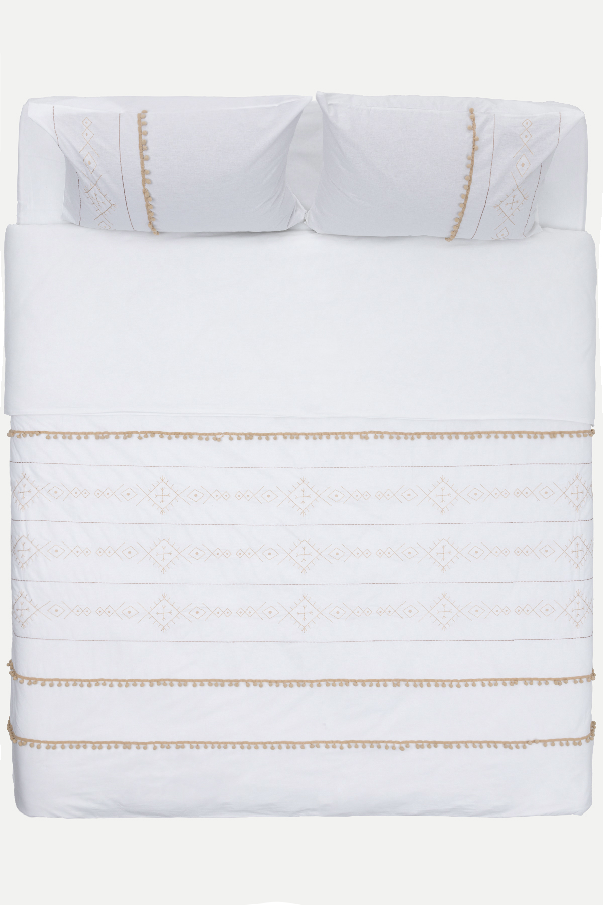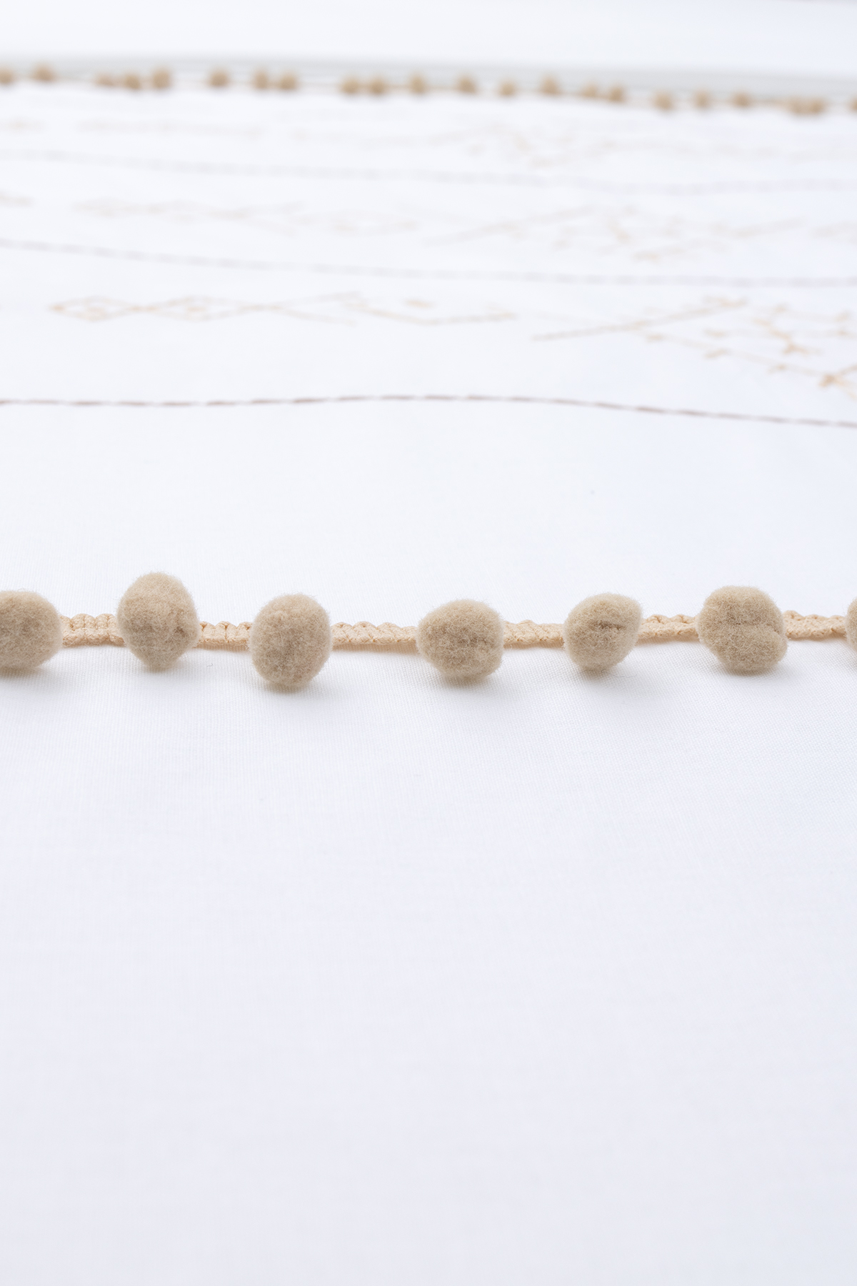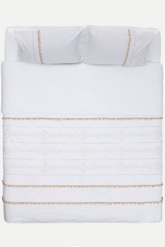 FARALYA NEVRESTIM SET Product Description Faralya Nevrestim Set, where ethnic patterns are combined with minimal design, provides a quality sleep experience in your bedrooms with its soft and comfortable structure made of 100% cotton. It will add elegance to your bedroom with its pompom details. Areas of Use Suitable for use in your bedrooms. Washing Instructions Can be washed in the washing machine. Dimensions Double Single