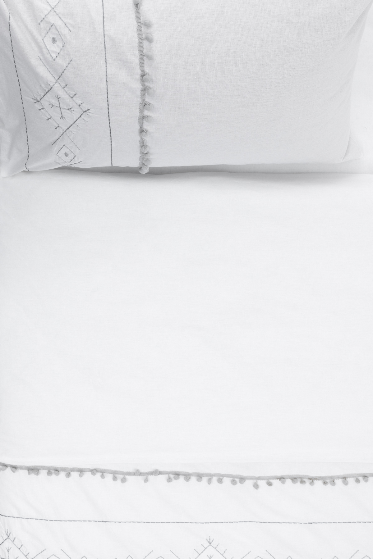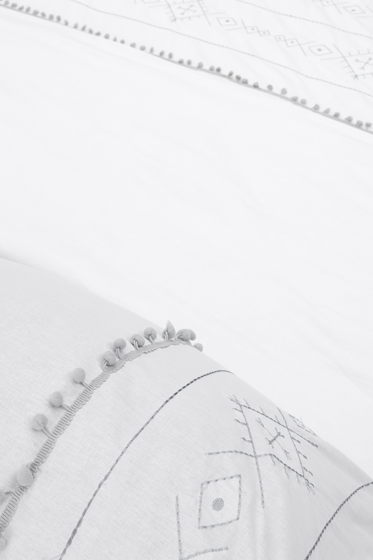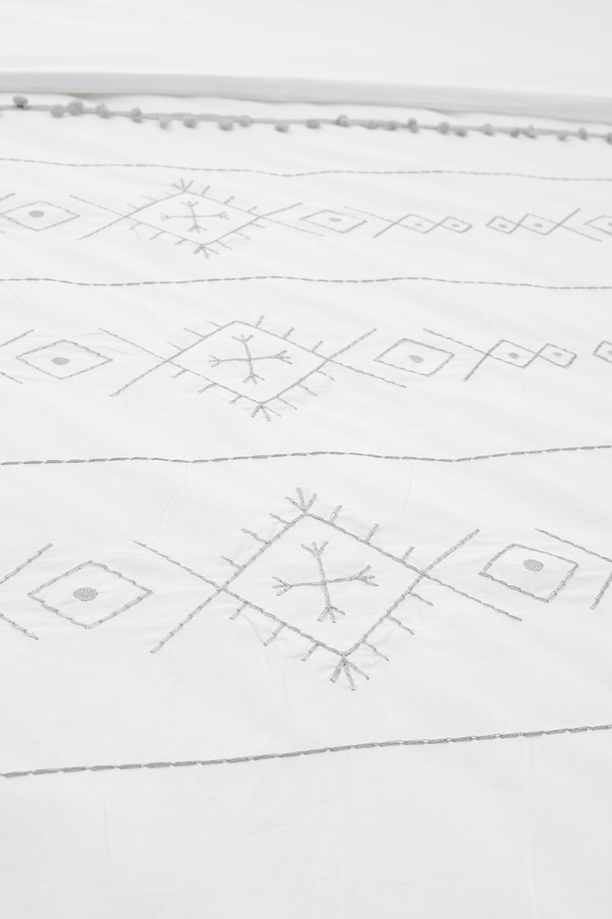 FARALYA NEVRESTIM SET Product Description Faralya Nevrestim Set, where ethnic patterns are combined with minimal design, provides a quality sleep experience in your bedrooms with its soft and comfortable structure made of 100% cotton. It will add elegance to your bedroom with its pompom details. Areas of Use Suitable for use in your bedrooms. Washing Instructions Can be washed in the washing machine. Dimensions Double Single