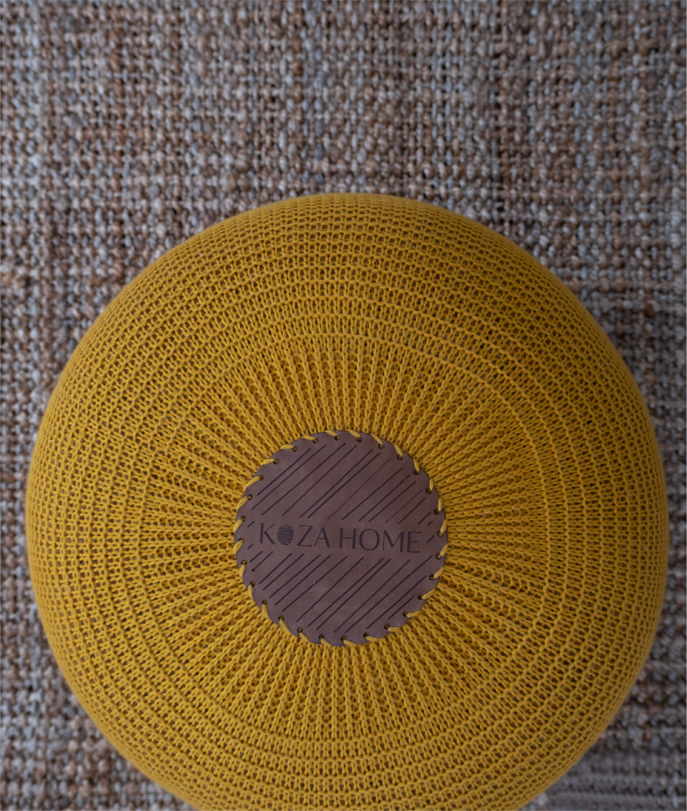 Koza Home Fluffy Knitted Pouf Mustard 8003 50 x 50