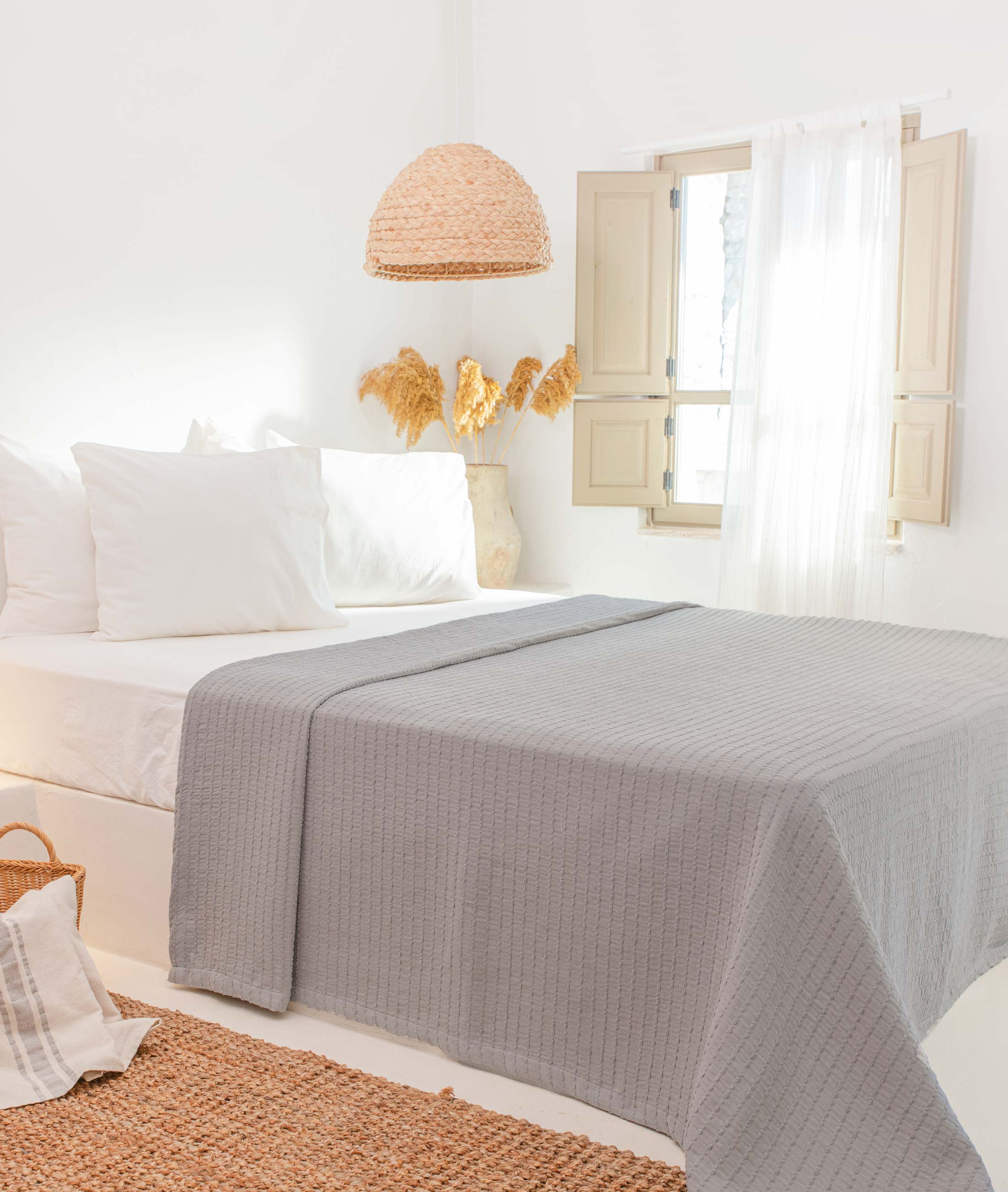 luxurious touch to your bedroom with Freya Muslin 100% Cotton Grey Pique. • It has a sweat-proof structure thanks to its elegant embroidery patterns, lightweight structure and air-permeable texture. • This double pique, prepared with meticulous care, has a natural cotton texture that adds a fresh touch to your space. • It provides a wide coverage area for double beds with its generous size of 230x245 cm. • This product, which you can use either as a pique or a bedspread, offers an inviting texture that elevates your sleeping experience. • Freya pique effortlessly transforms your bedroom into a haven of peace by combining both comfort and aesthetics. • Ideal for those looking for a tidy and stylish bedroom, the pique provides a flashy and harmonious look with its simple color palette. • Ideal for those who care about decoration, comfort and elegance, Freya Muslin 100% Cotton Pique offers a versatile solution. Care Recommendation • It is recommended to wash at 30 degrees. • Do not bleach. • Does not require ironing. • Drying by laying is recommended. • Do not dry clean. Note: Actual colors may vary depending on lighting and monitor settings.
