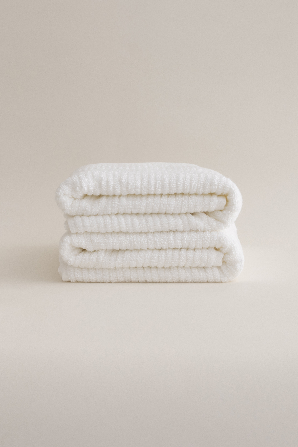 Koza Home Ivory White Corduroy Micro Fiber 100% Cotton 2-Piece Hand Face Towel Set 50 X 90 - 50 X 90 1131A 50 x 90 - 50 90