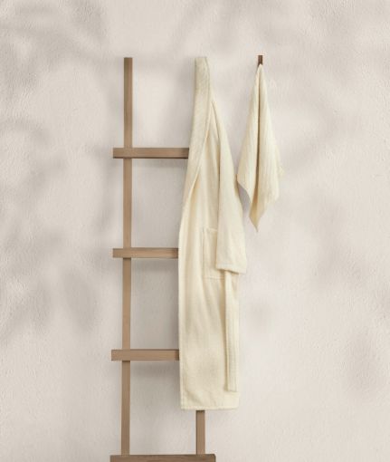 Koza Home Likya 100% Cotton Cream Dowry Bathrobe Set of 2 1 Bathrobe 1 Towel 1053A SM