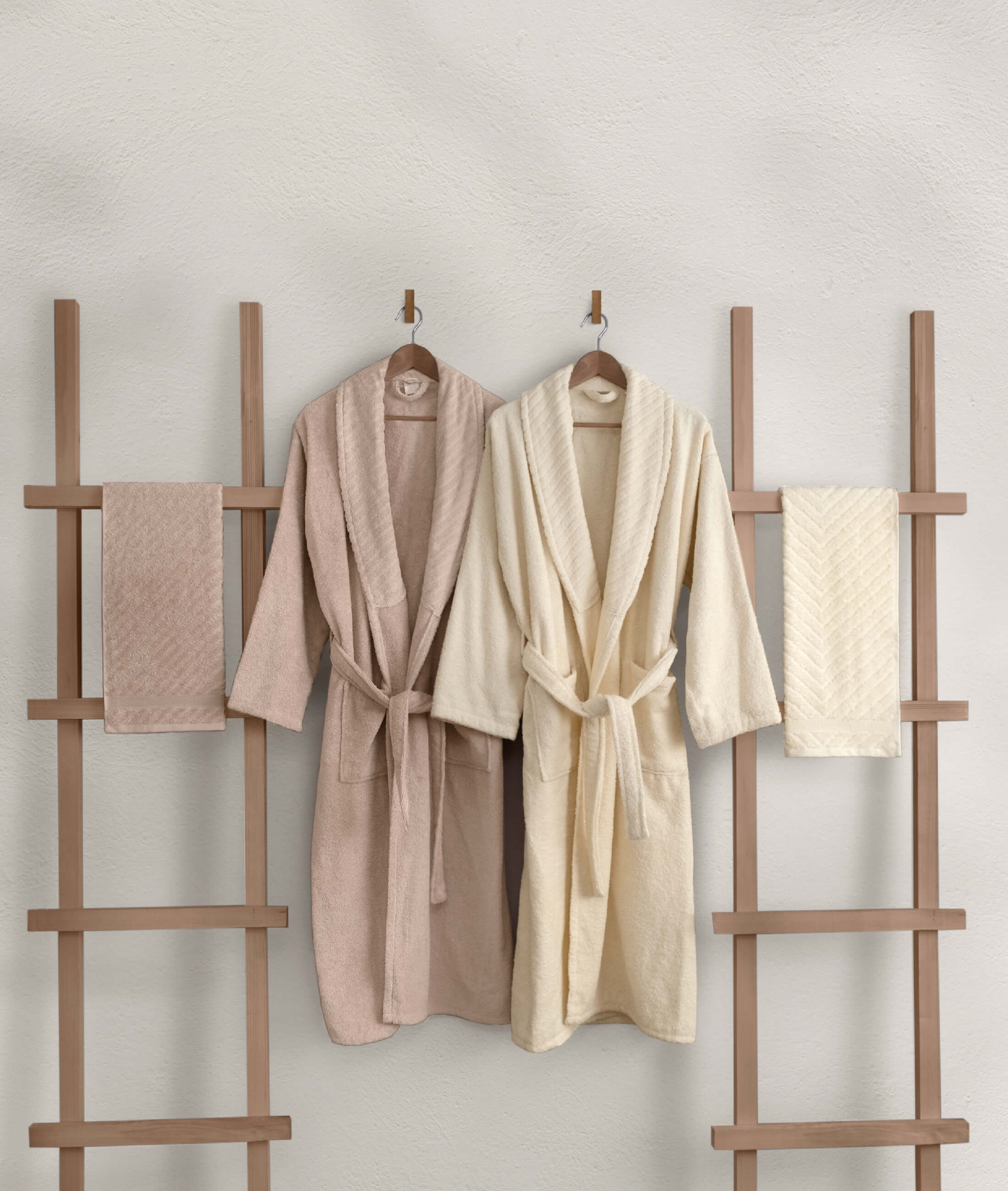 Koza Home Likya 100% Cotton Salmon-Cream 4-Piece Dowry Family Bathrobe and Towel Set 2 Bathrobes 2 Towels 1062A Standard