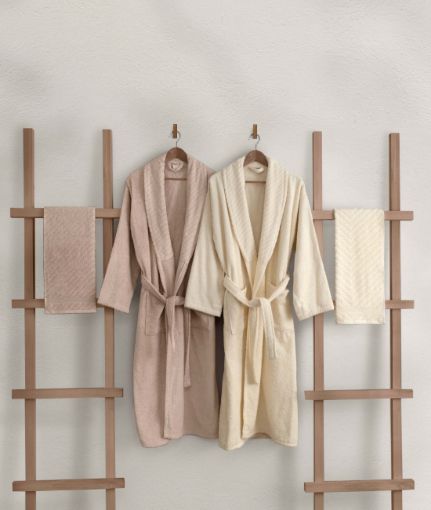 Likya bathrobe brings Mediterranean freshness to your bathroom with its 100% cotton structure, 5 different color options, jacquard collar and 2 size options. Our bathrobes, which are sold in 3 different categories as single bathrobe, double set and quadruple set, provide a natural touch to your skin and reach a softer texture with washing. 100% Cotton 5 different color options Jacquard collar Size SM, Size L-XL
